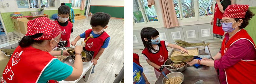 分享端午節的由來和習俗, 還邀請家長來園包粽子帶領孩子們體驗包粽子的樂趣。