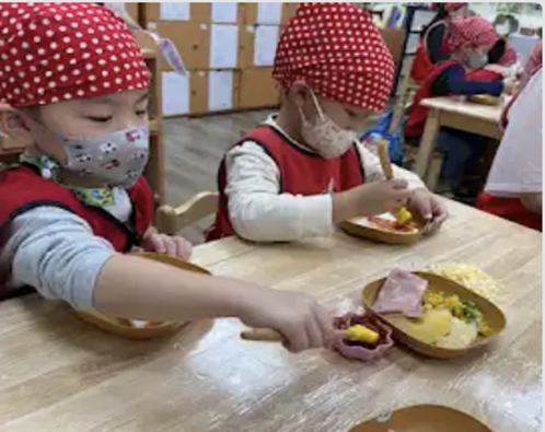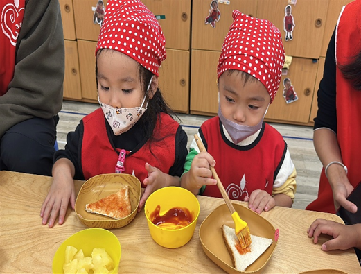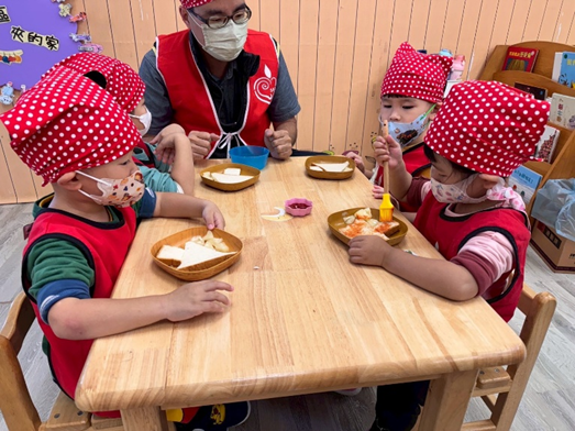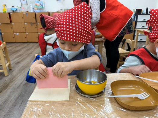 此次幸福廚房活動製作「披薩」,特別邀請家長志工一同參與,陪伴孩子動手操作,體驗烘焙樂趣,增進親子互動與學習的美好時光。