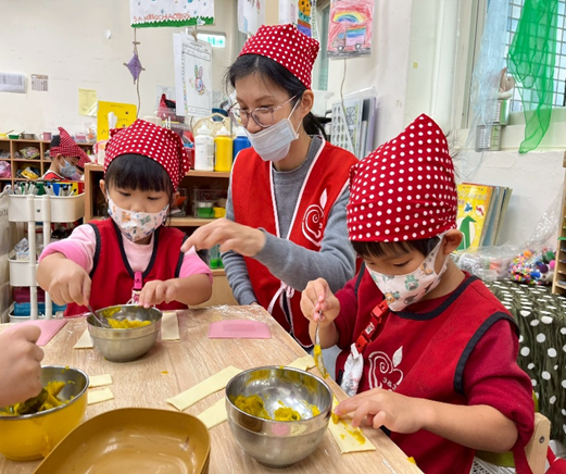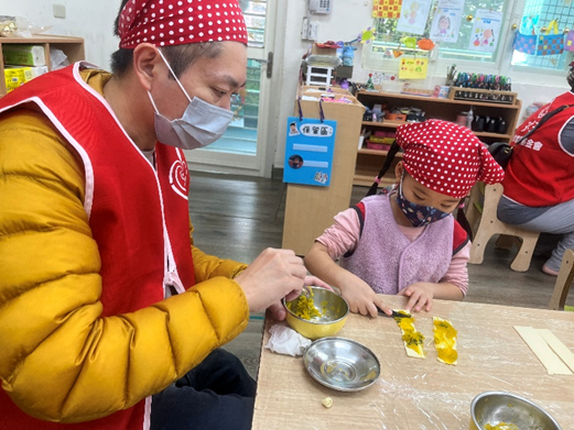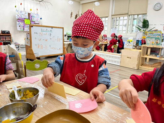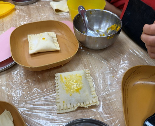 此次幸福廚房活動製作「南瓜酥」,特別邀請家長志工一同參與,陪伴孩子動手操作,體驗烘焙樂趣,增進親子互動與學習的美好時光。