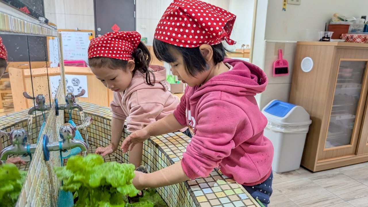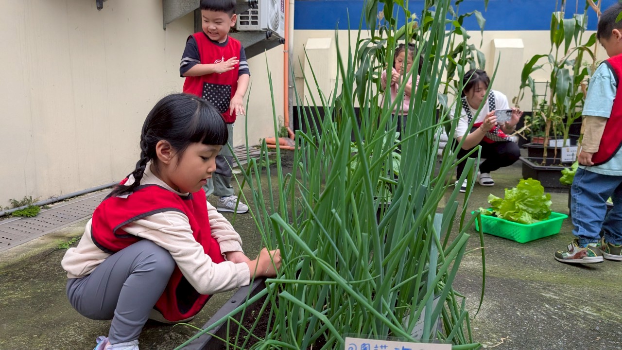孩子們親手種下青蔥、大陸妹、紅蘿蔔、玉米和番茄,
