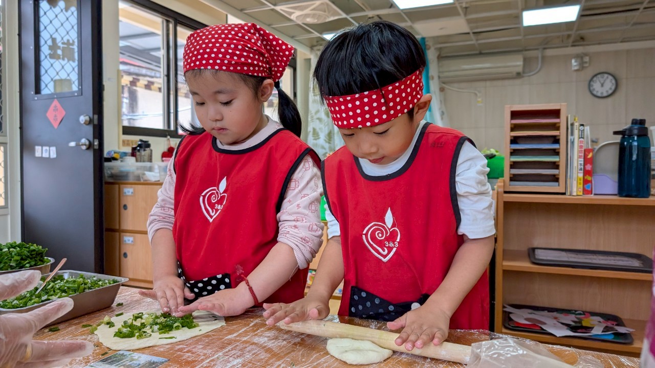 從採收、洗菜、挑菜、切菜,到揉麵糰、包蔥花、煎蔥油餅,