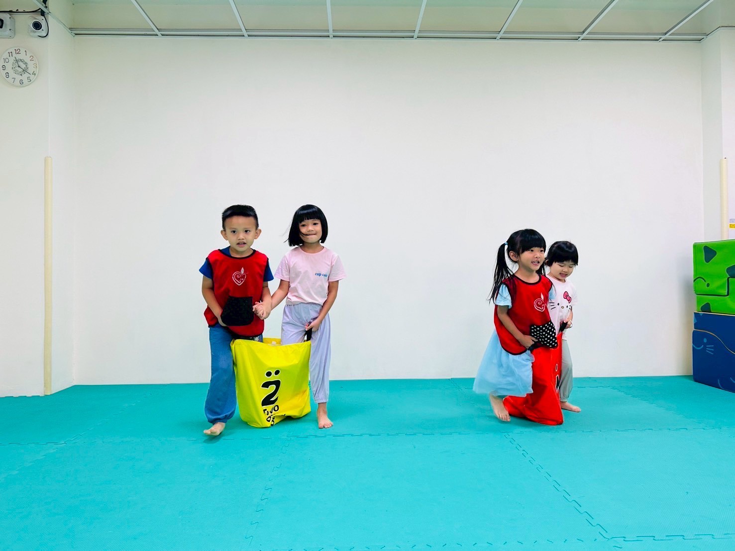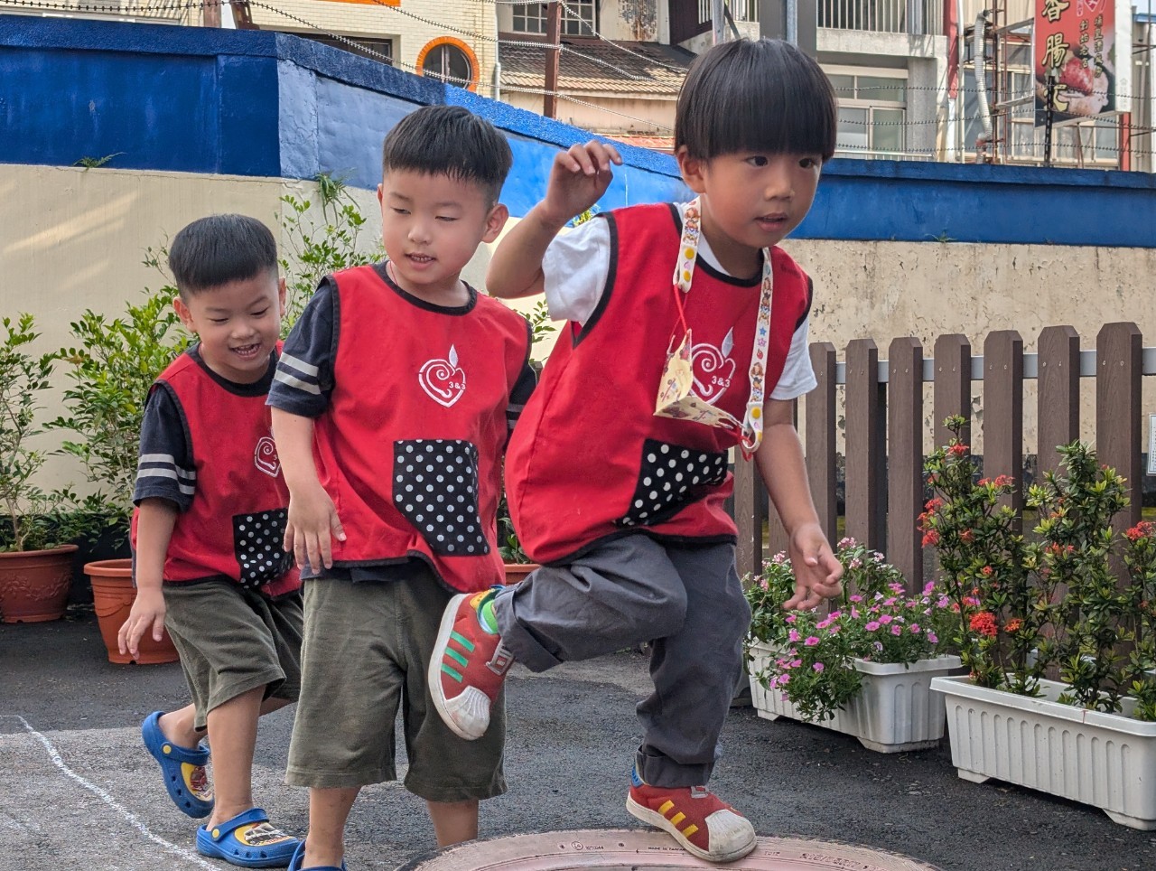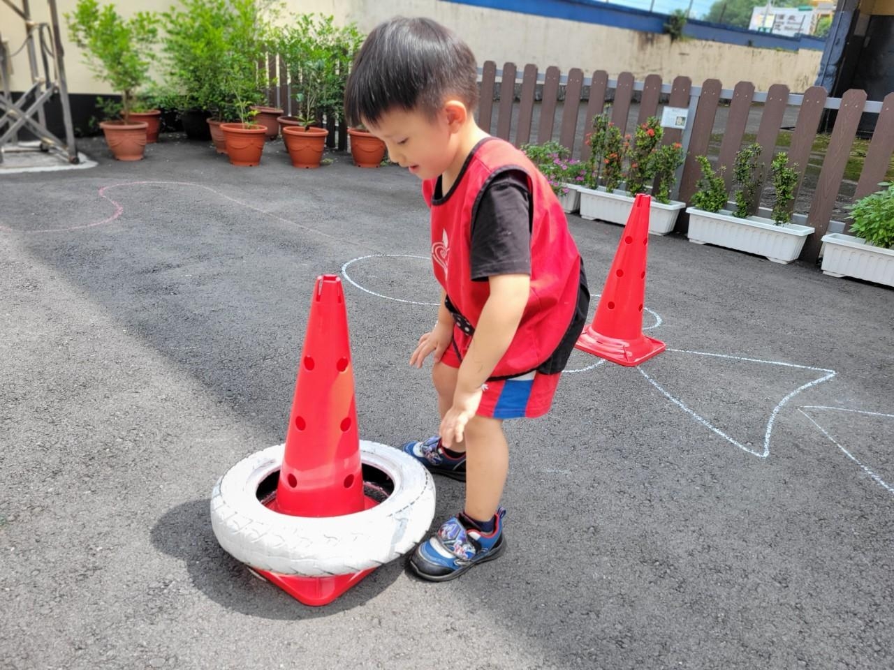依據幼兒的發展,老師安排各種跳躍、爬行、奔跑和投擲......等活動,