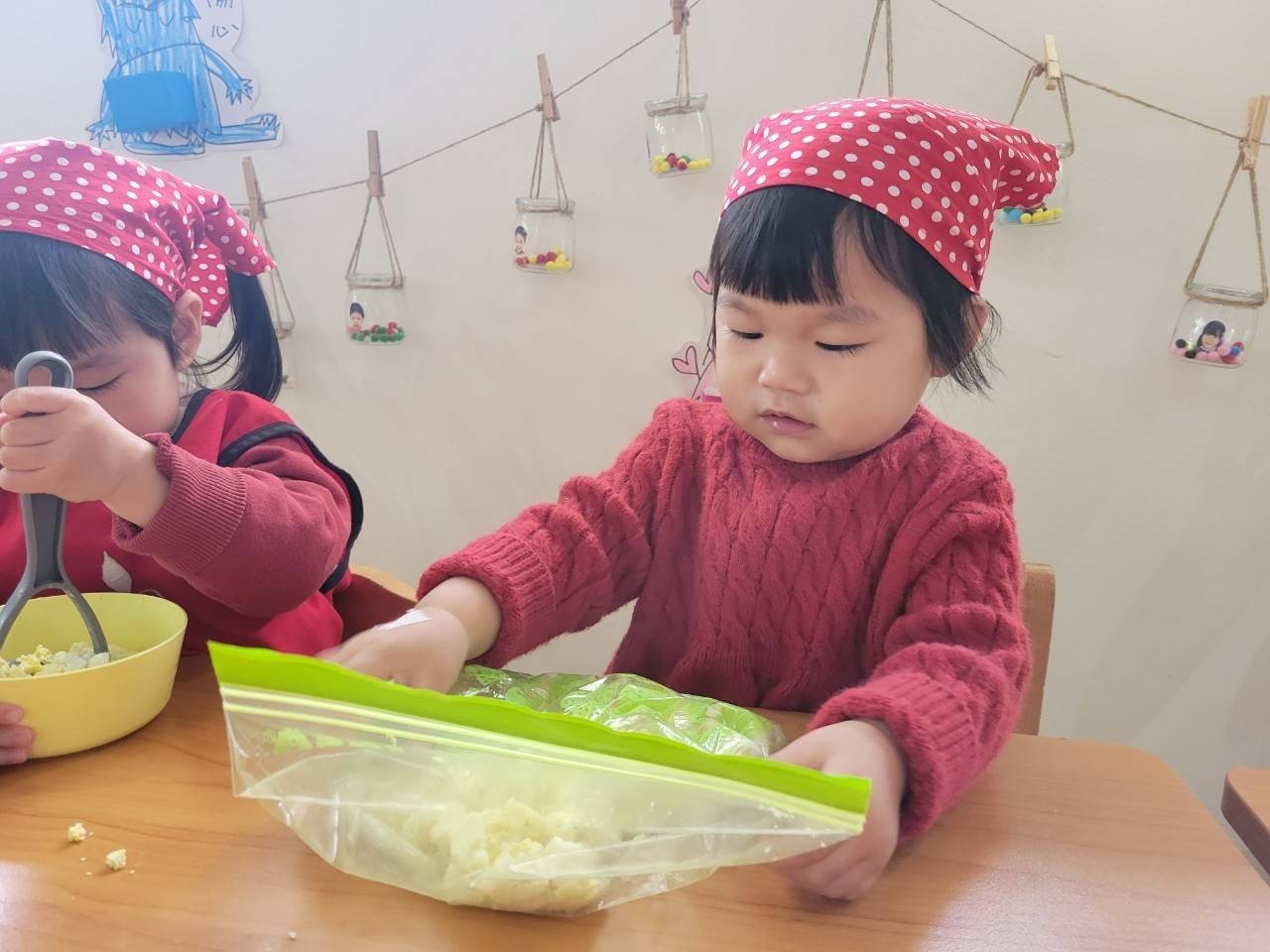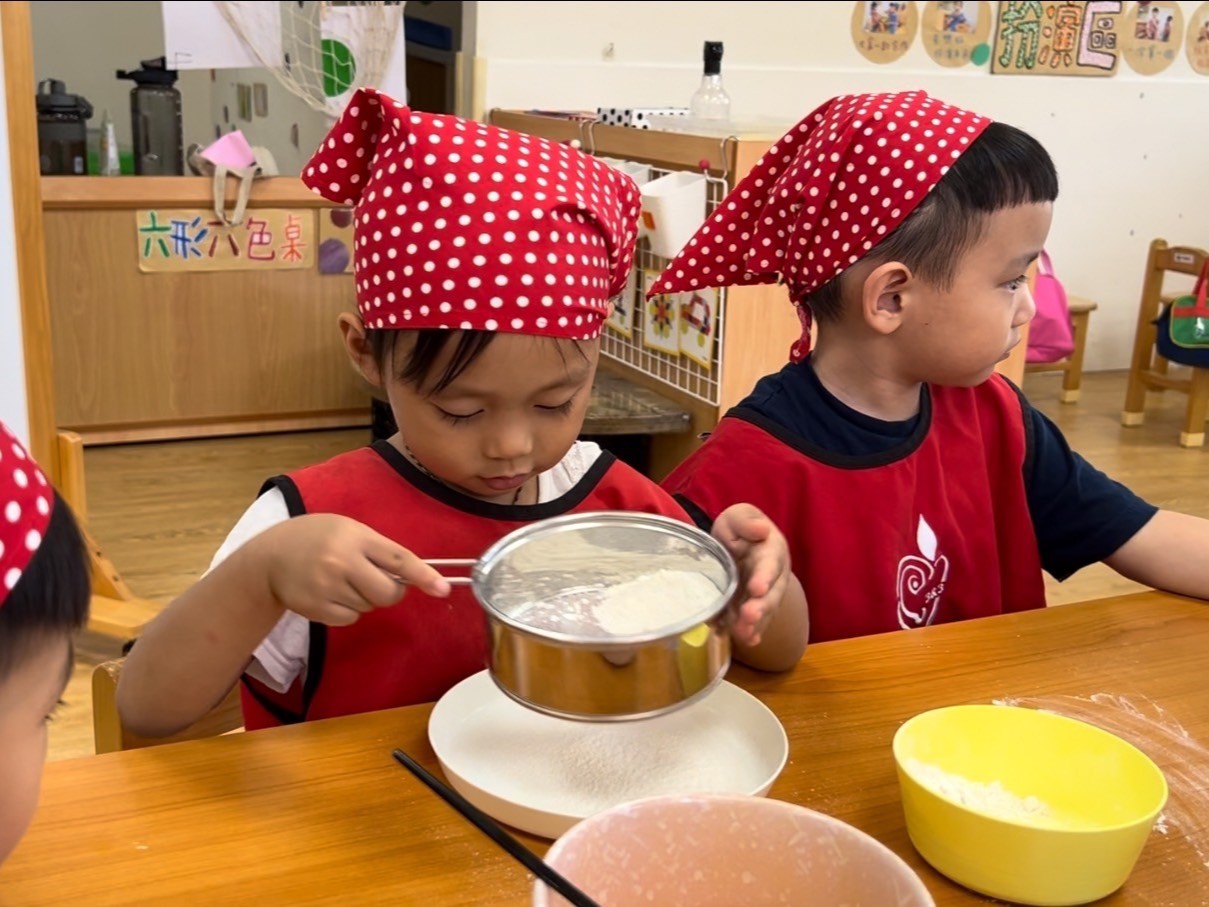 寶貝們親手製作了各式各樣的形狀餅乾,小手用心揉捏著麵團,完成所有的小點心,