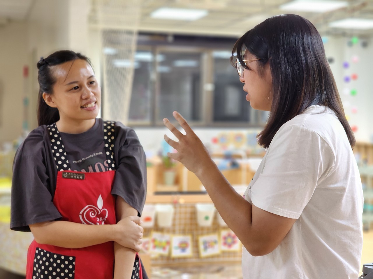 老師與家長一同聊聊天,體驗寶貝學校的生活點滴