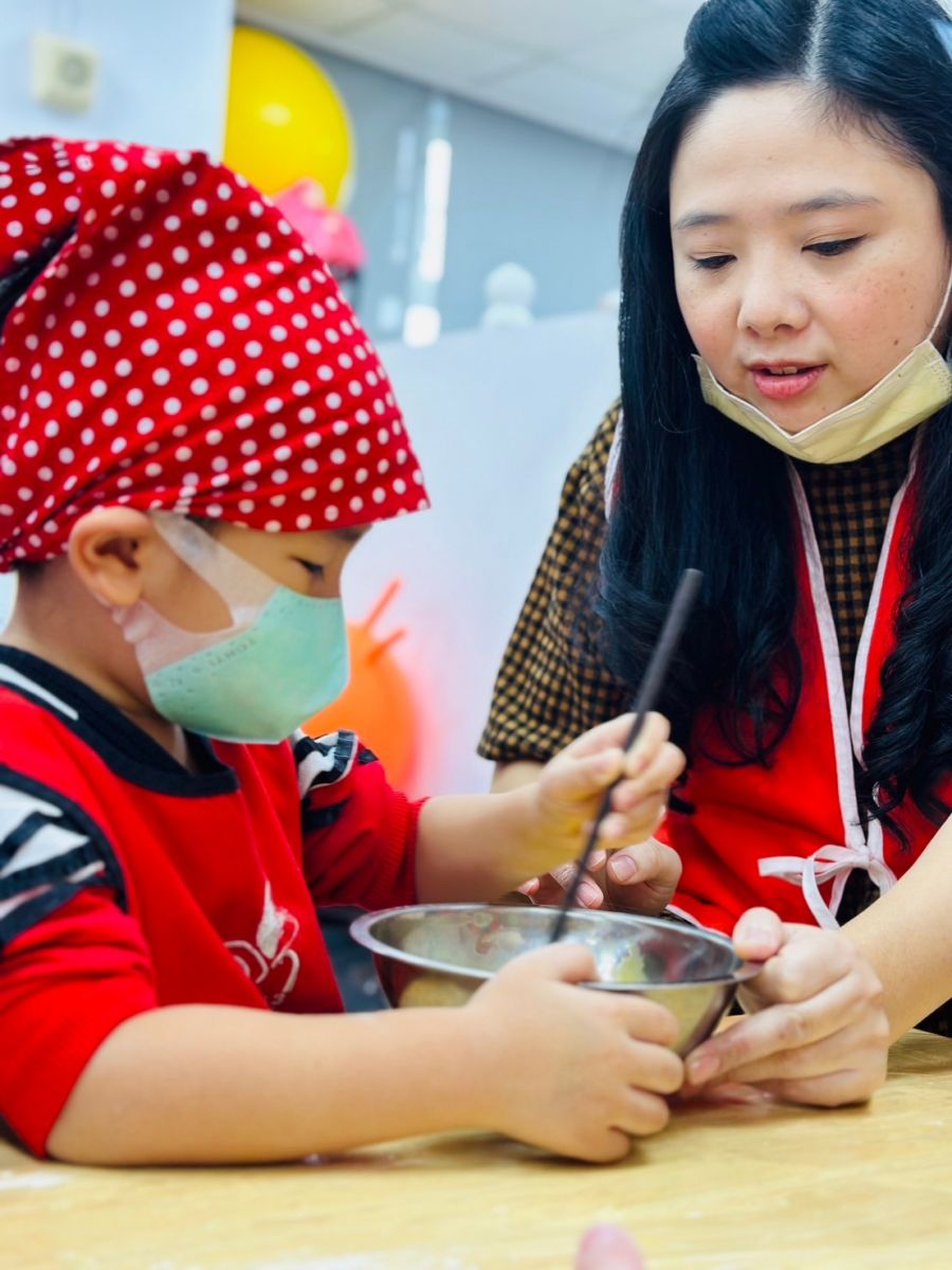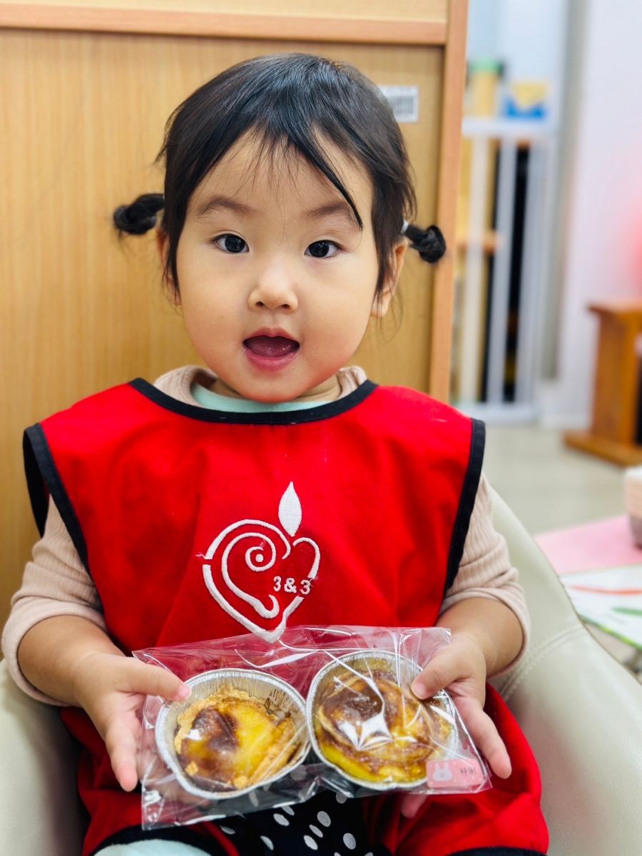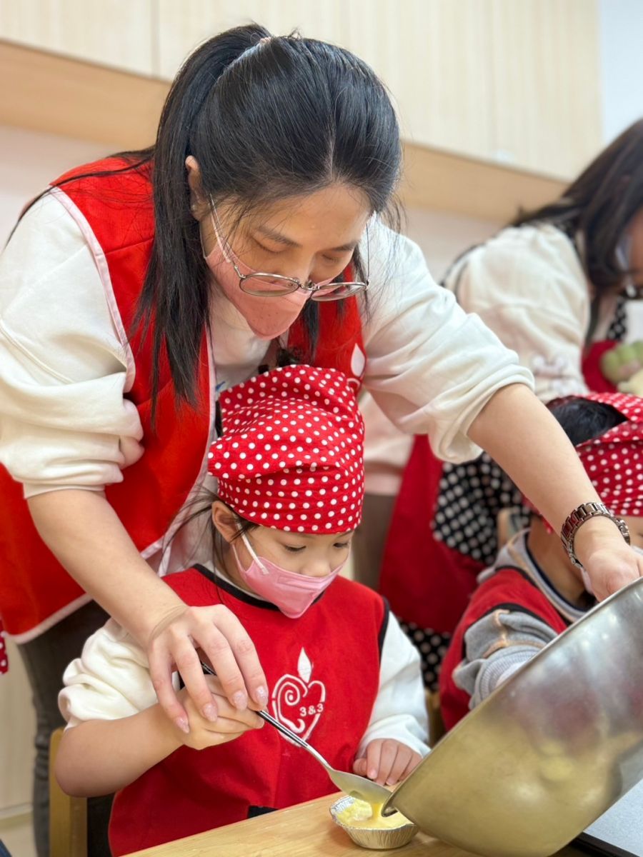 並加入此次小蛋糕的靈魂"藍莓果醬",送進烤箱後就完成了藍莓小蛋糕囉!幼兒們都迫不及待想帶回家跟爸爸媽媽分享呢!
