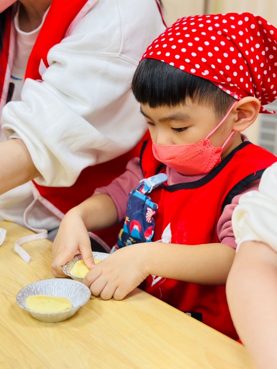 今日的飲食教育-幸福廚房-歡慶兒童節-巴斯克乳酪蛋糕,崇德的小寶貝們順利完成蛋糕任務!祝福寶貝們兒童節快樂唷!
