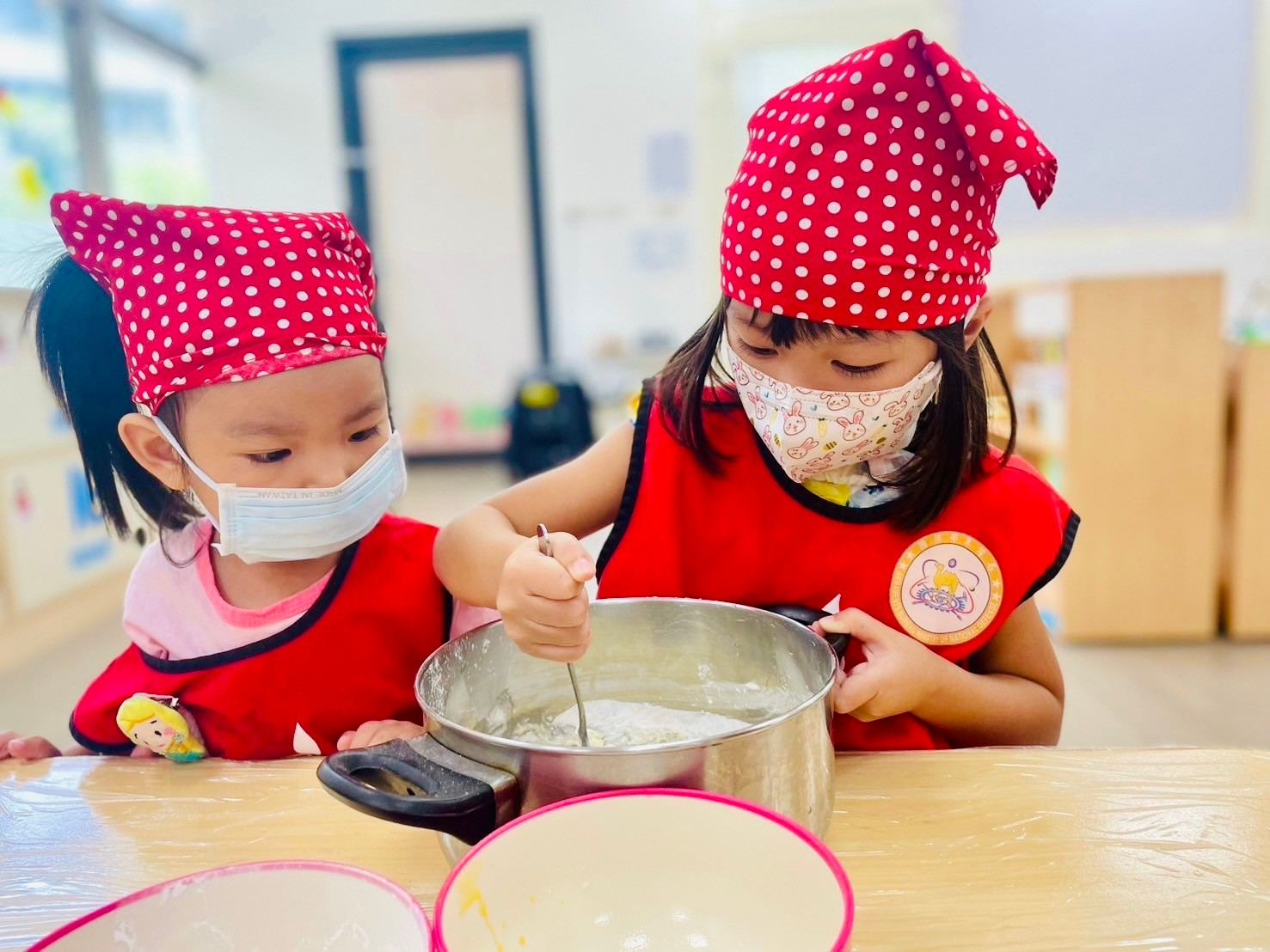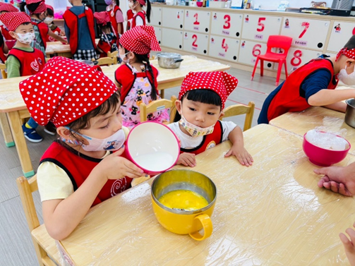 本月的飲食教育我們結合聖誕節慶,要帶孩子動手製作美味又可愛的聖誕節烤餅乾!將鬆餅粉、奶油和牛奶攪拌在一起,並運用萬能的小手將食材混合均勻形成麵團,接著運用手的力氣幫麵團揉捏按摩,就可以準備桿平和壓模囉!這次的餅乾麼模型我們特別選擇了因應聖誕節氣氛的圖案,讓寶貝可以自行配對選擇喜愛的圖案,完成後還可以帶回家和爸爸媽媽一起分享喔!