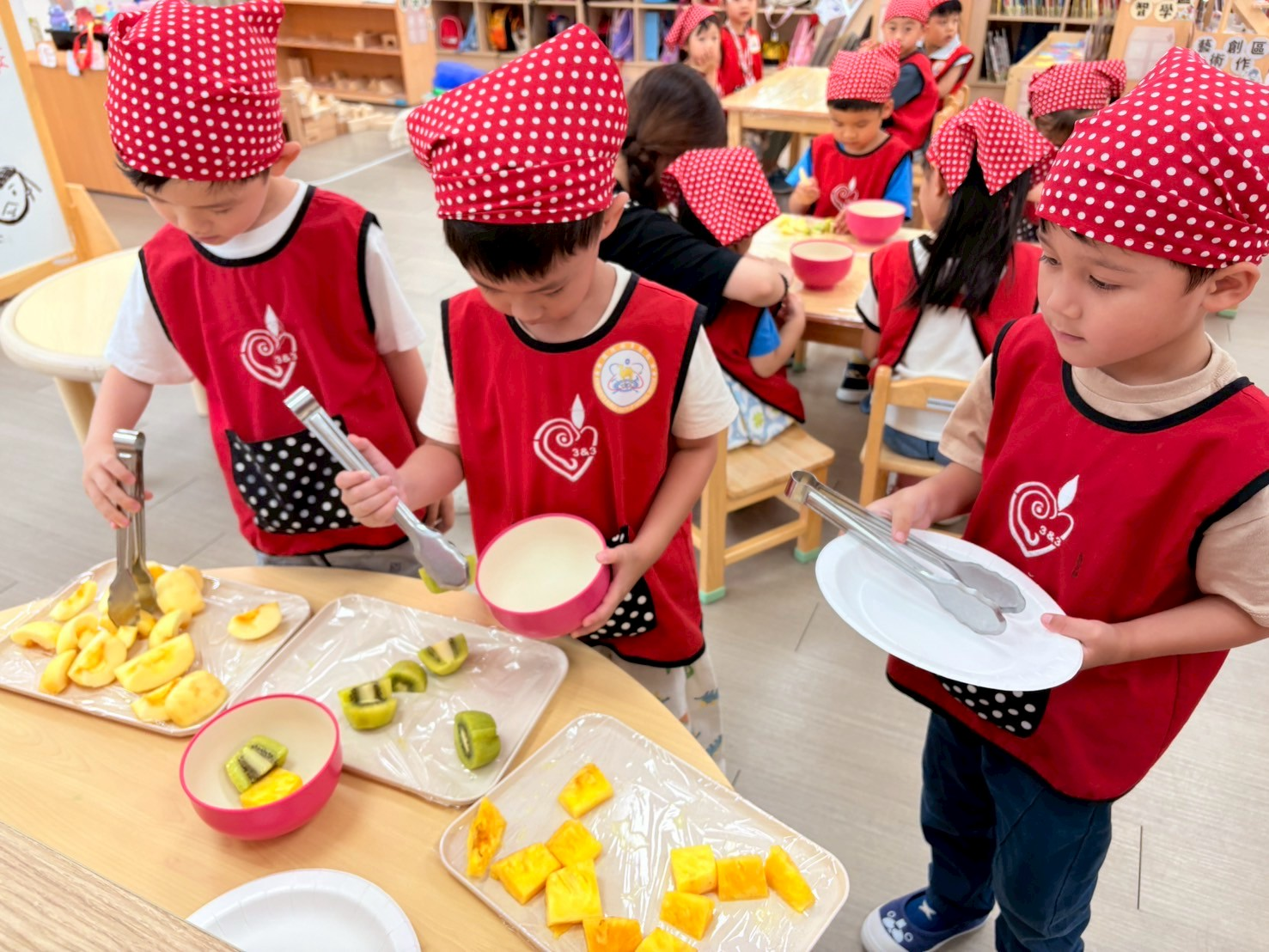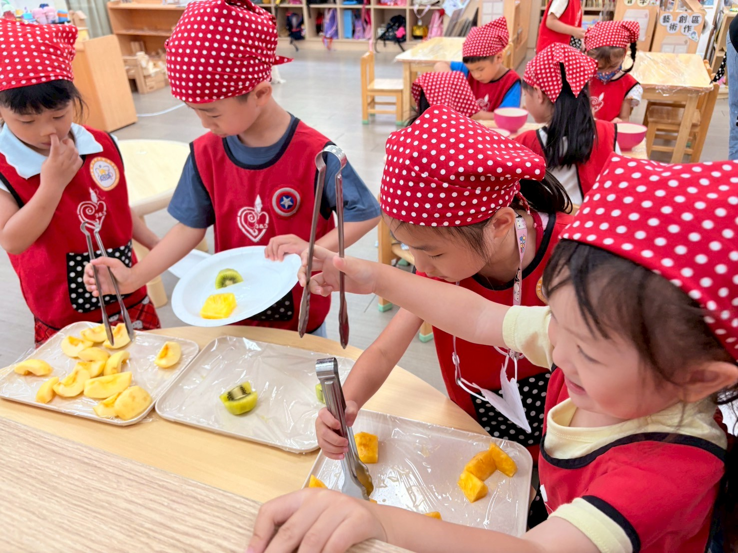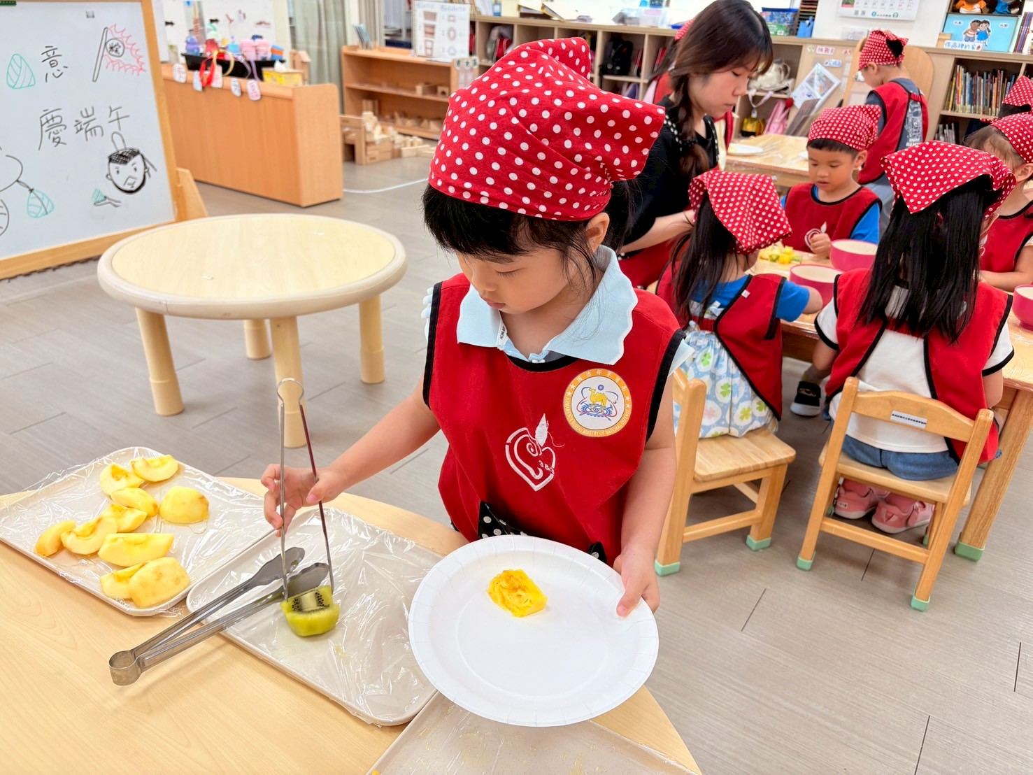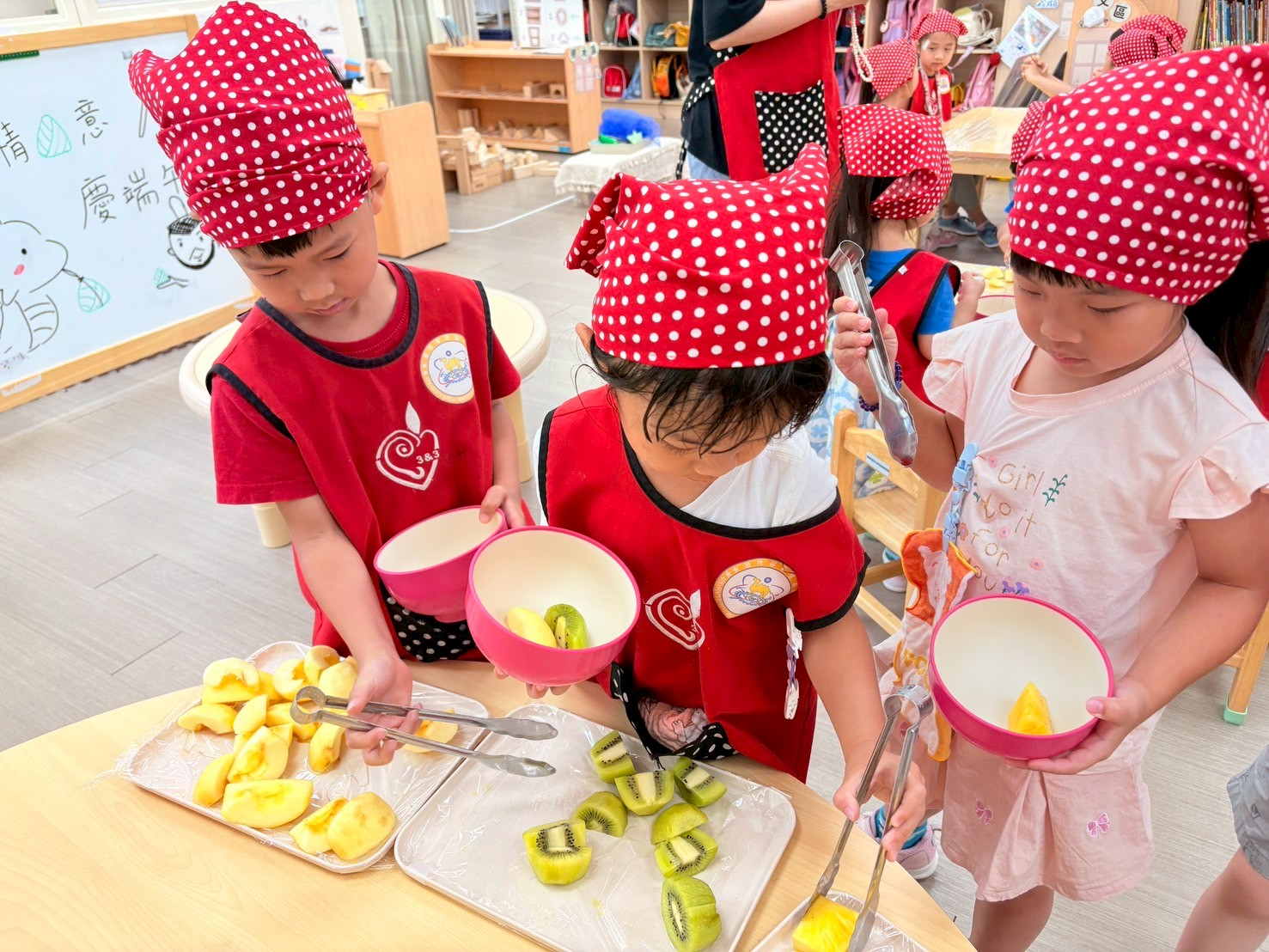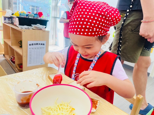 色彩鮮艷又繽紛的水果不僅吸引孩子的目光,讓孩子在製作過程中訓練美感及色彩搭配的能力,透過夾取水果、倒入吉利丁的過程中練習精細動作及協調能力。這次的水果冰粽不僅充滿節慶氛圍,更是清涼、美味呢~