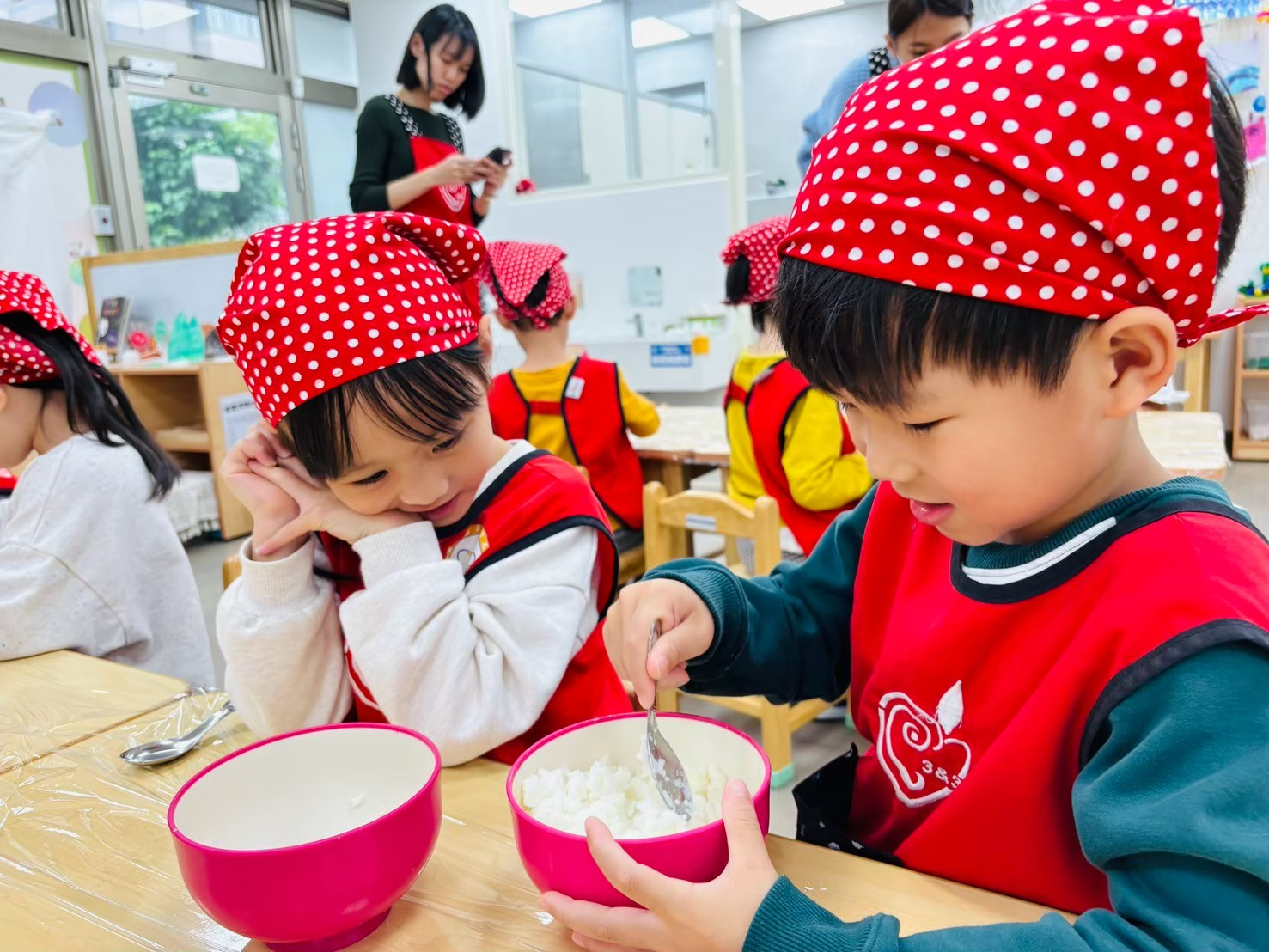 過程中孩子都發揮想像力和創造力,除了搓出圓圓的形狀之外,還有愛心、方形、笑臉等等不同形狀圖案的湯圓,真是可愛呢~