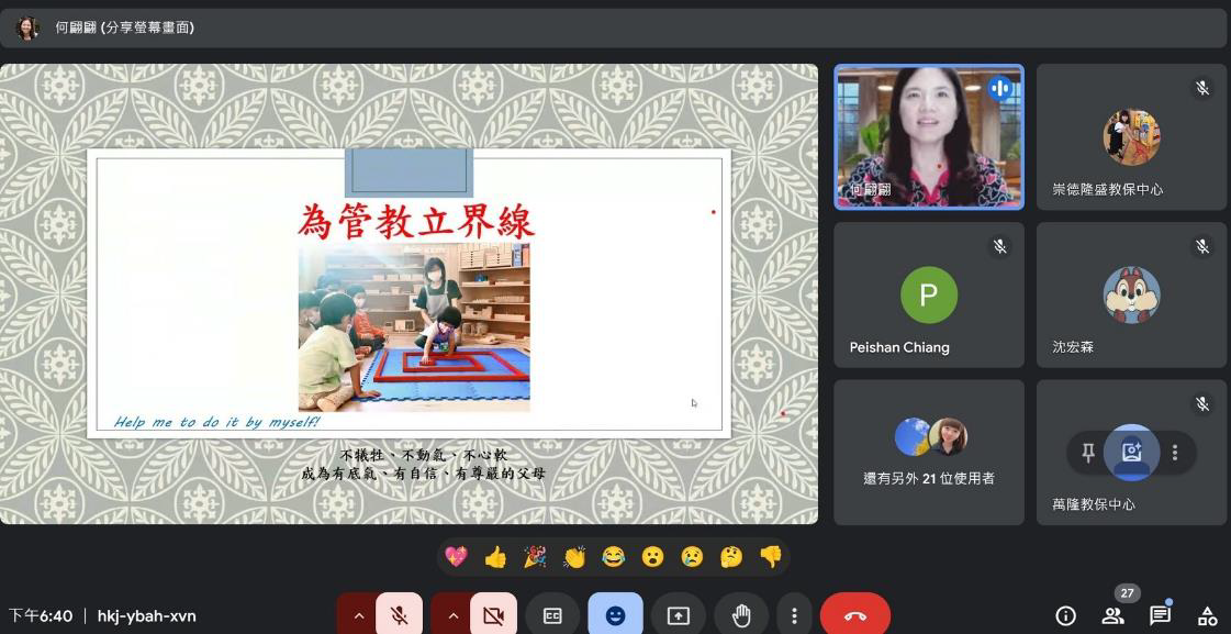 透過講座分享讓家長能覺察自己孩子的情緒及釐清情緒發生的原因,透過理解情緒、接納情緒及處理情緒的三步驟及面向出發,幫助家長更了解家中的「噴火龍」。