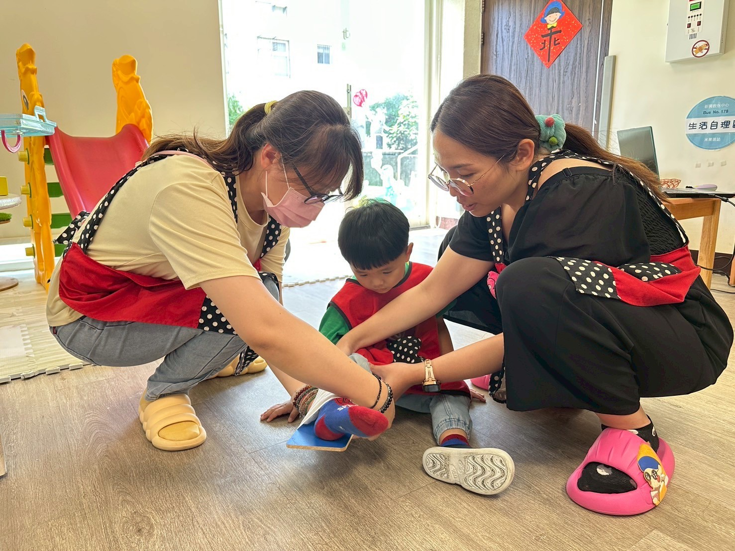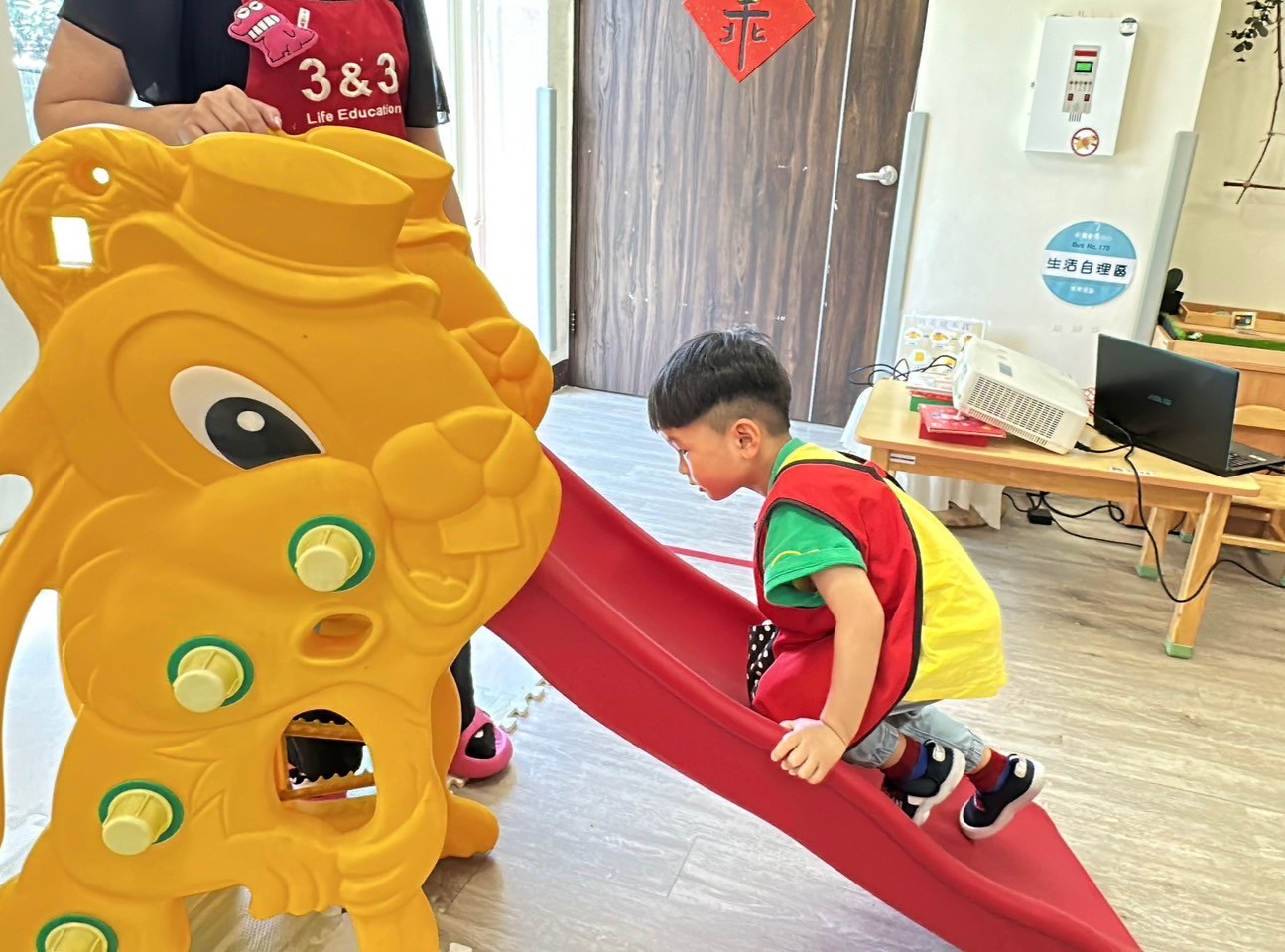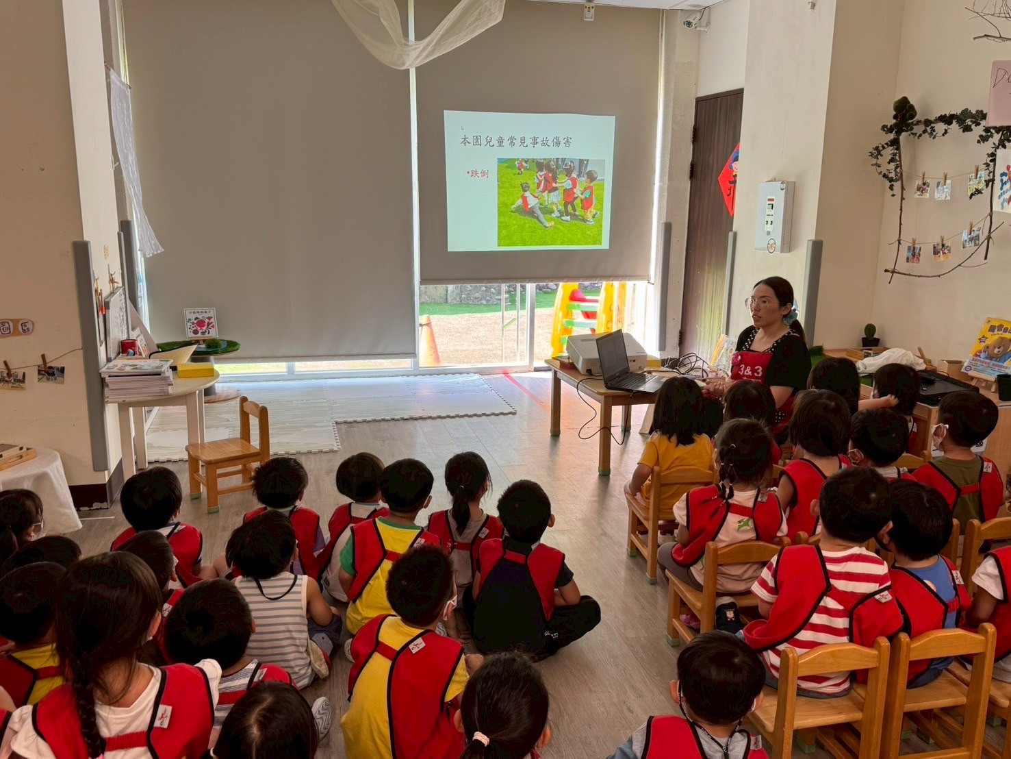 「安全小尖兵出動!跌倒是遊戲中常見的意外情況,如果真的不小心在玩溜滑梯時跌倒,導致腳部骨折,我們該怎麼辦呢?快跟著我們一起學習正確的應變方法吧!」