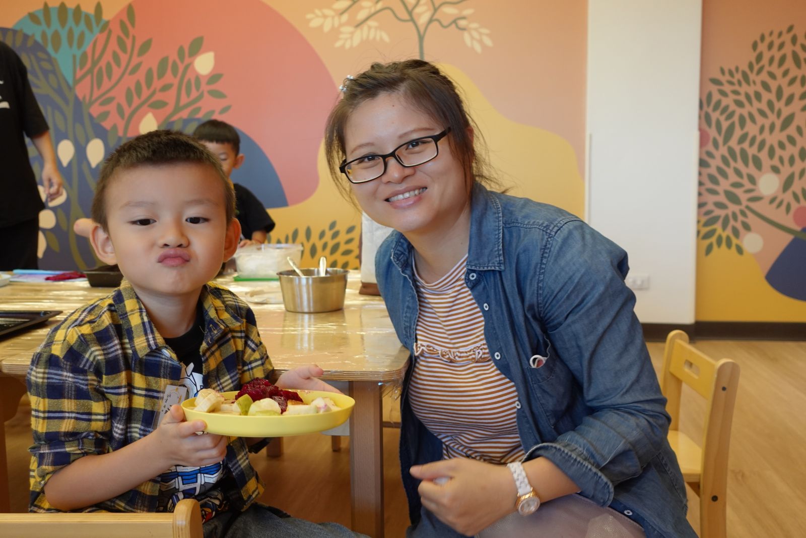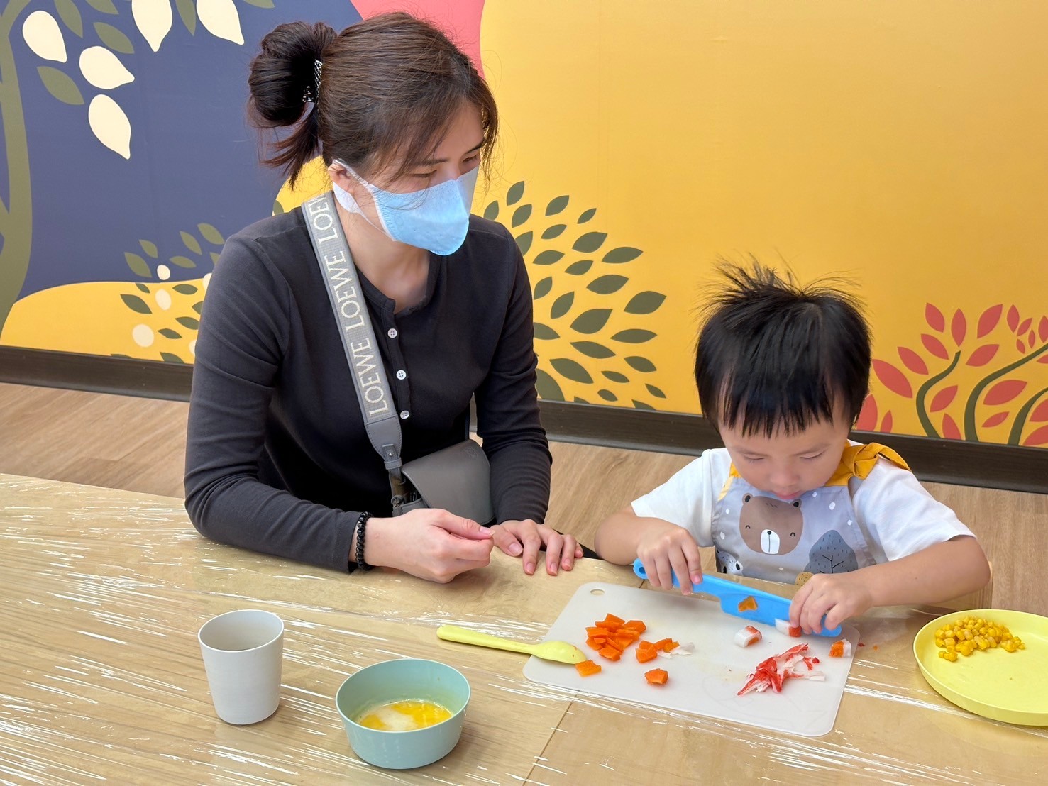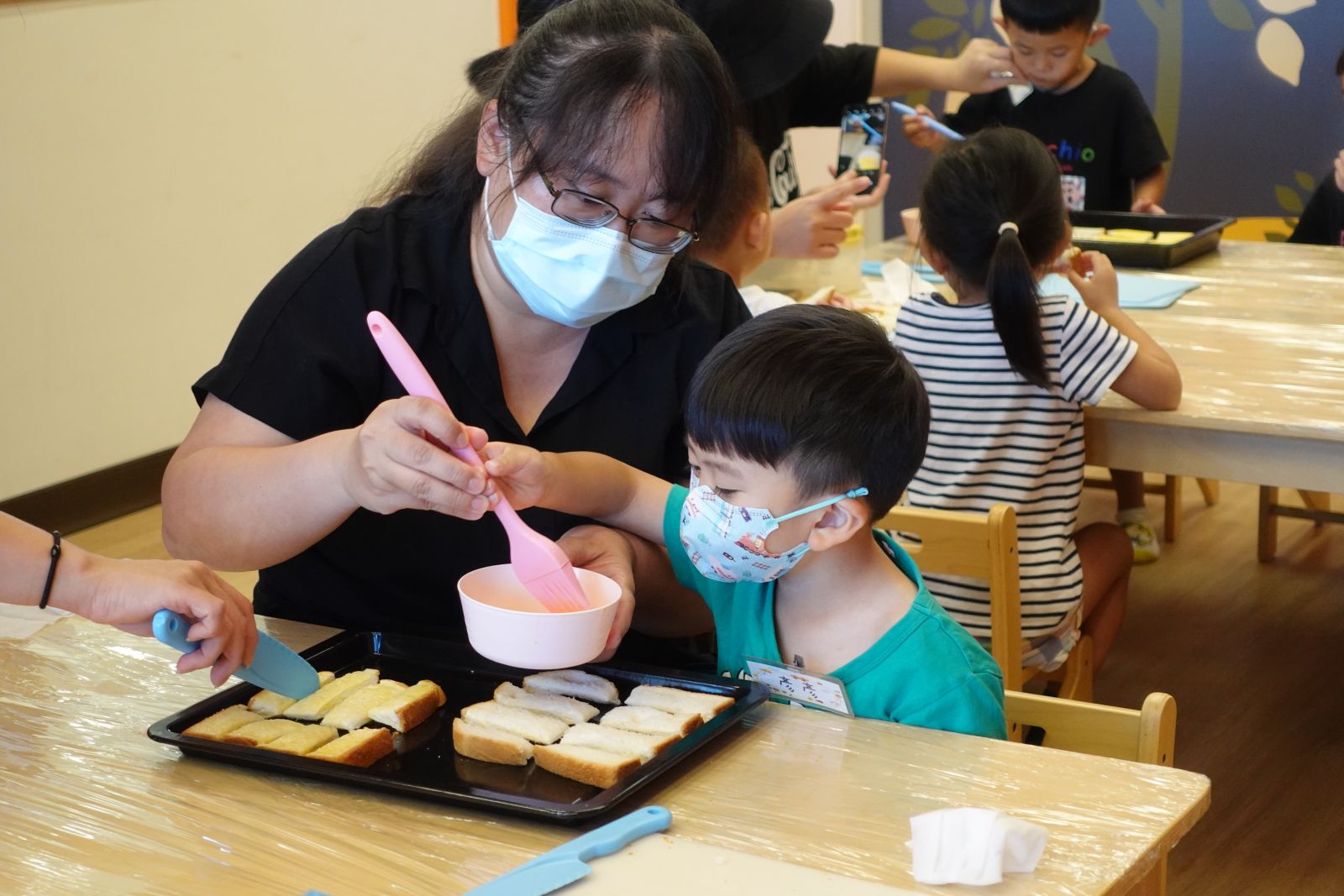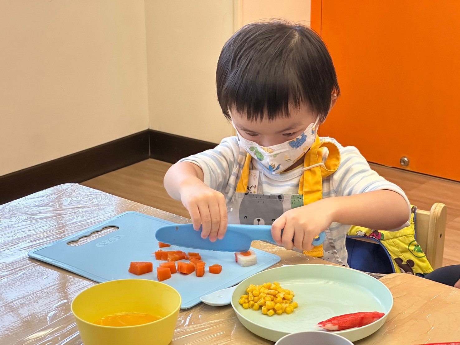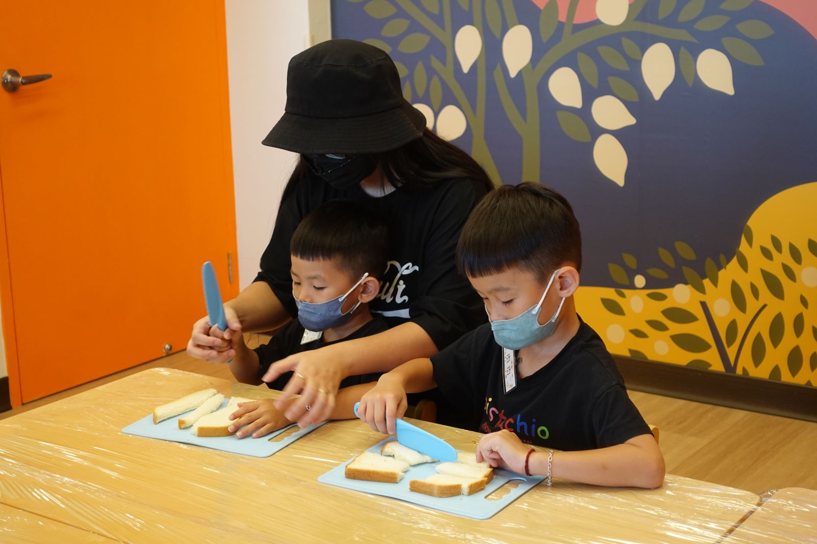 用鼻子聞聞看、用手手摸摸看、再來把水果切一切,放在烤好的吐司上,就可以變成一道美味的料理呢!