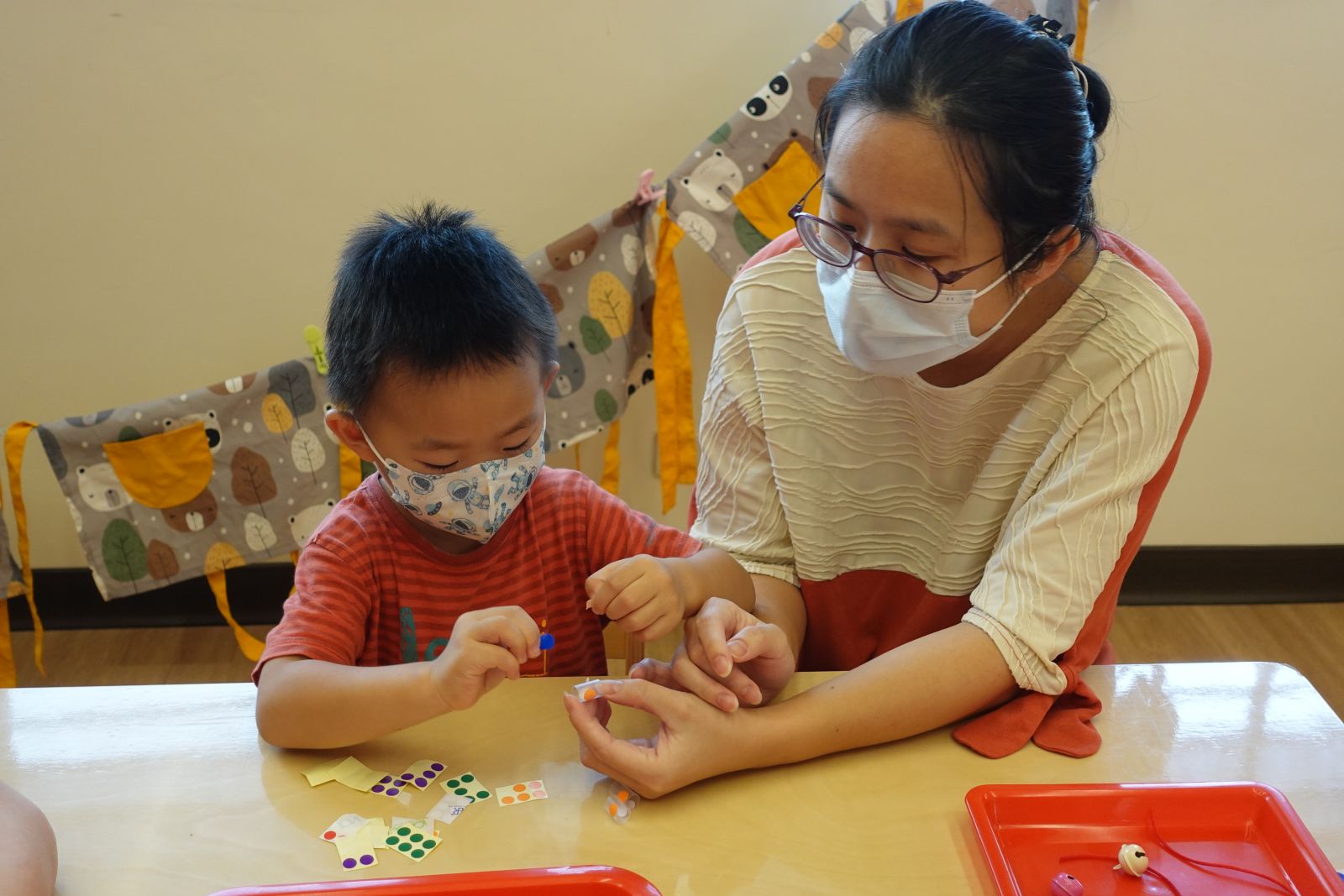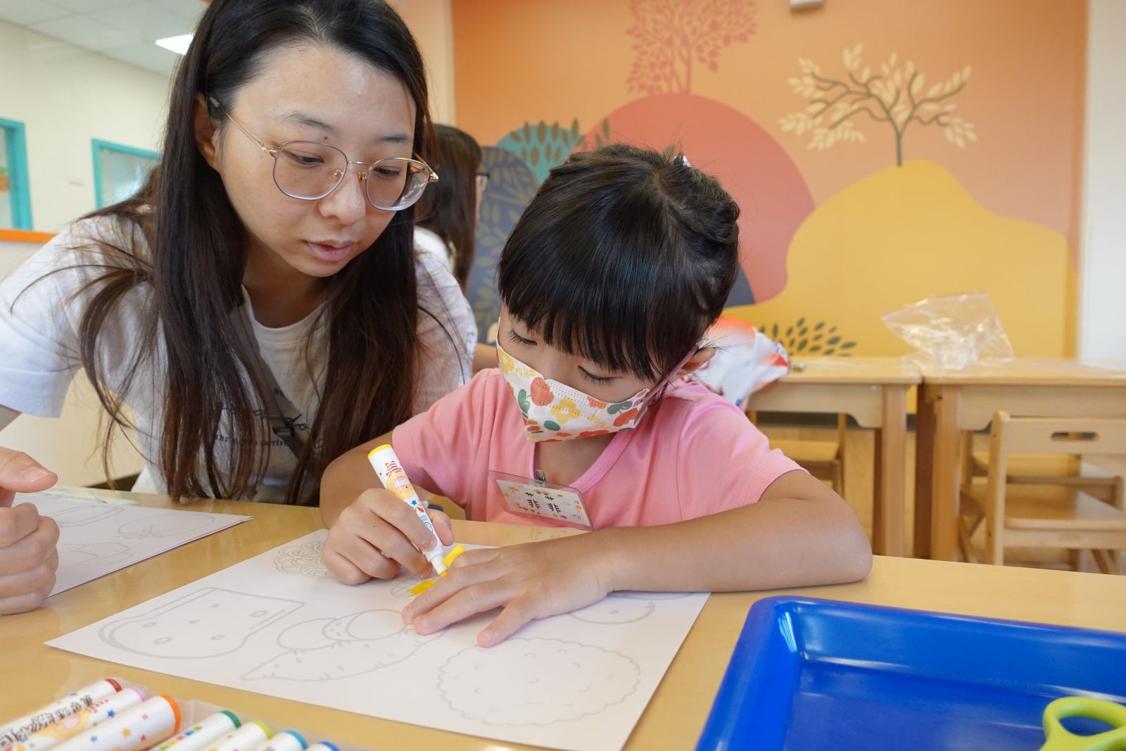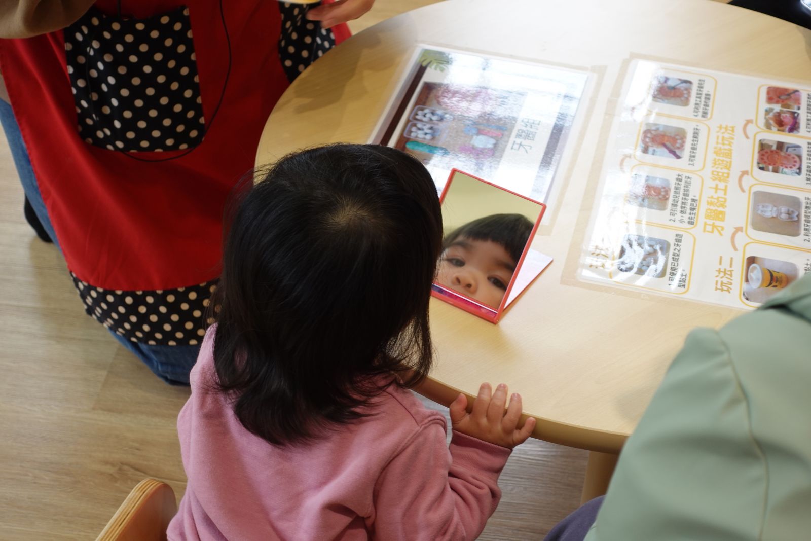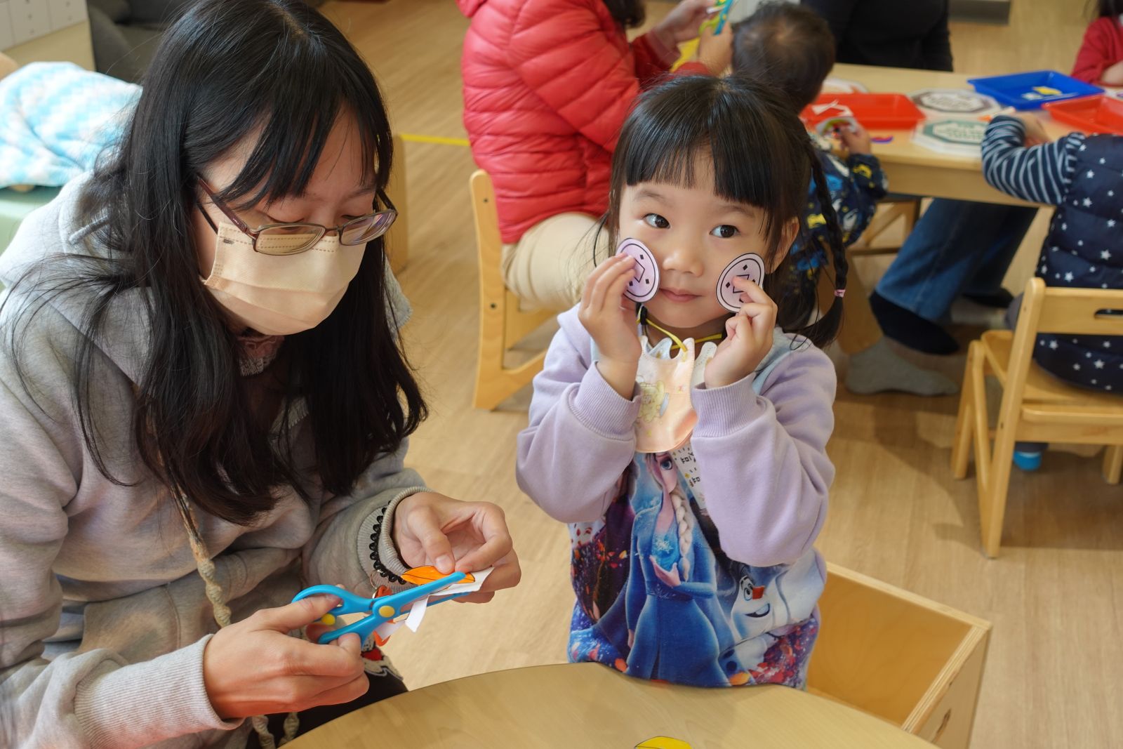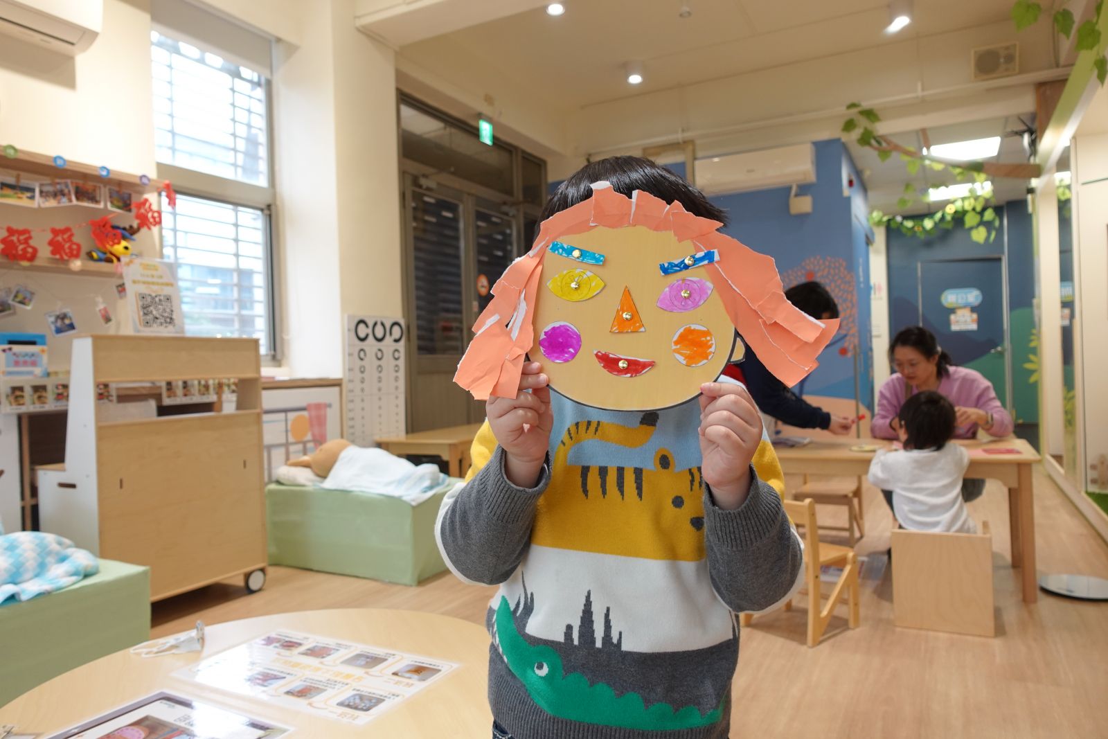 小朋友有仔細看過鏡子裡的自己嗎?眉毛是彎彎的、嘴巴是紅紅的,還有圓圓的眼睛,大小朋友們跟著老師製作屬於自己的五官,開心的時候嘴角往上,難過的時候眉毛向下,不管你是甚麼五官,都是獨一無二的喔!