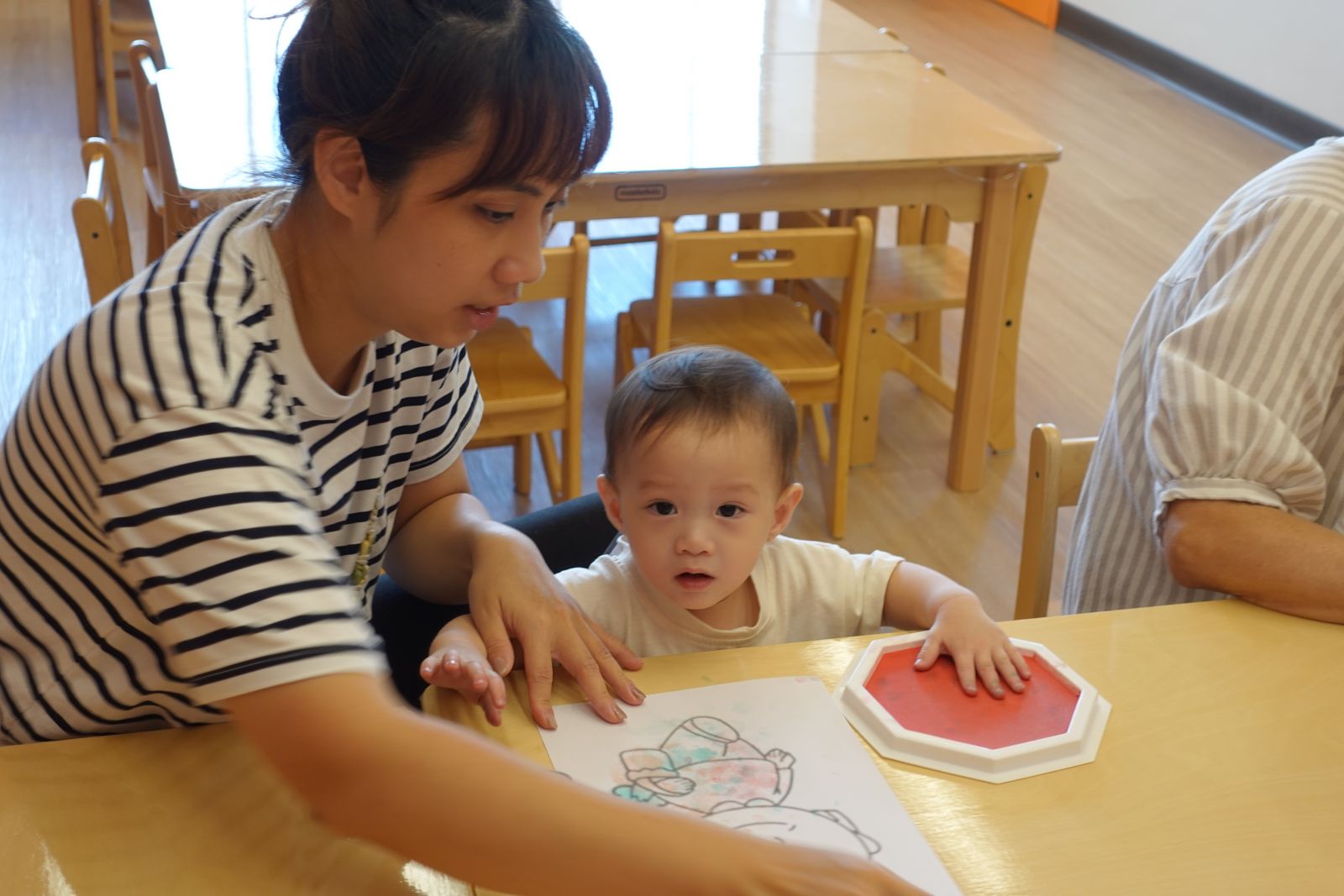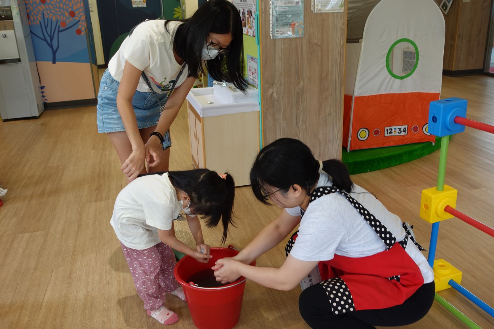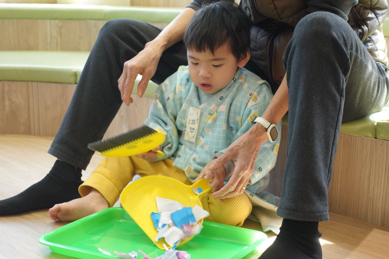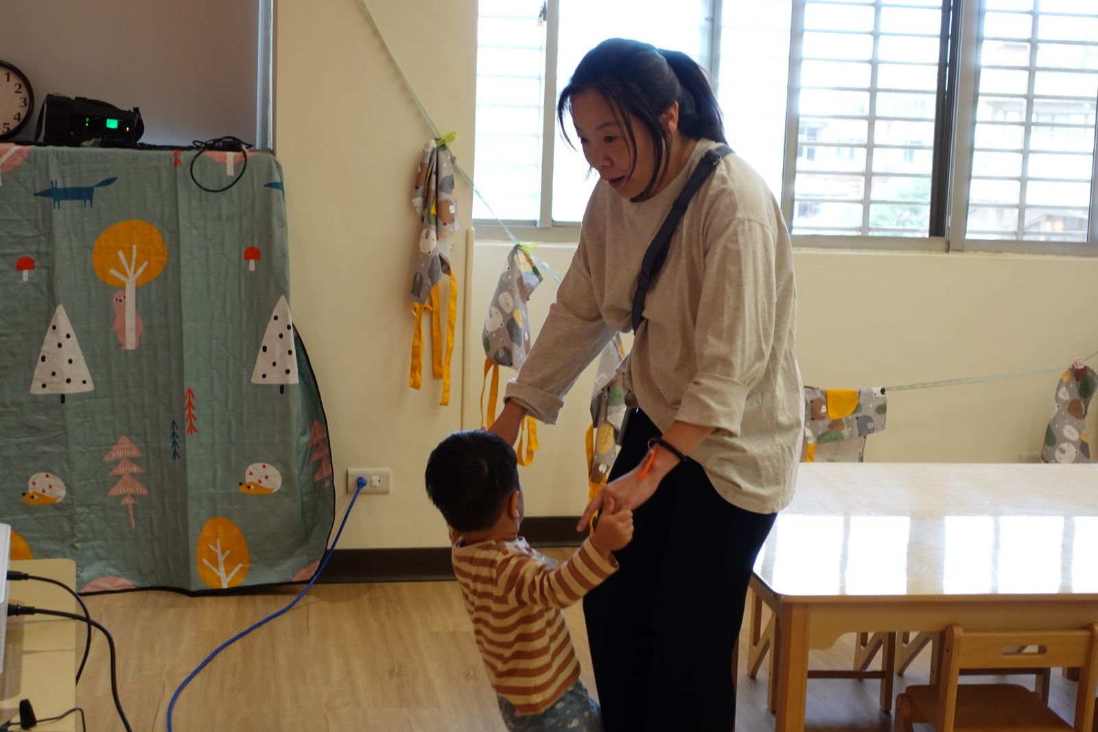 老師帶著親子一起讀《謝謝你!小幫手》,故事中的小孩做了好多家事,雖然有些失誤,但主角的媽媽總是和他說:謝謝你呀!小幫手,原來平時在家也可以讓孩子一起參與做家事,培養責任感和自主能力。接著親子跟著老師一起嘗試動手擦桌子、洗抹布、一起擺餐具,當一日小幫手,原來家事也可以變成美好的親子時光呢!