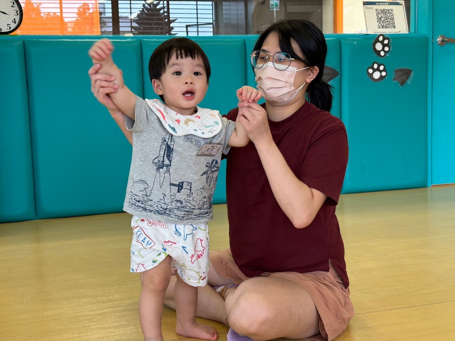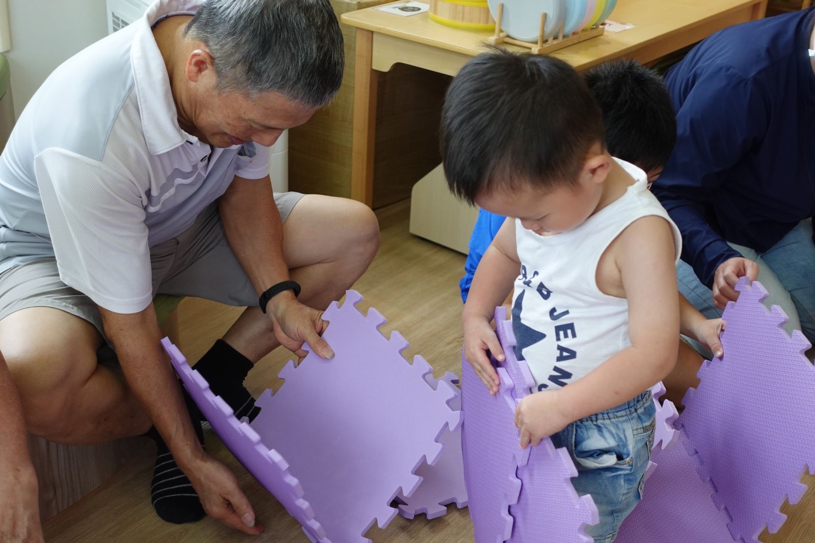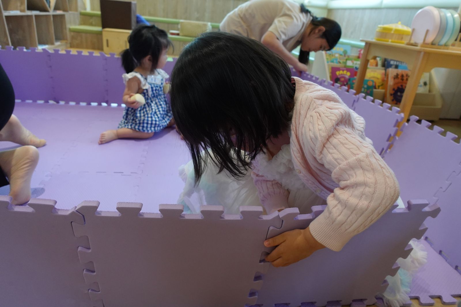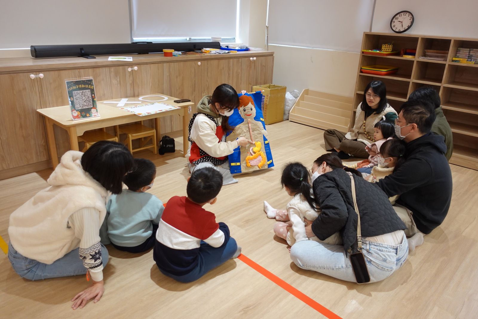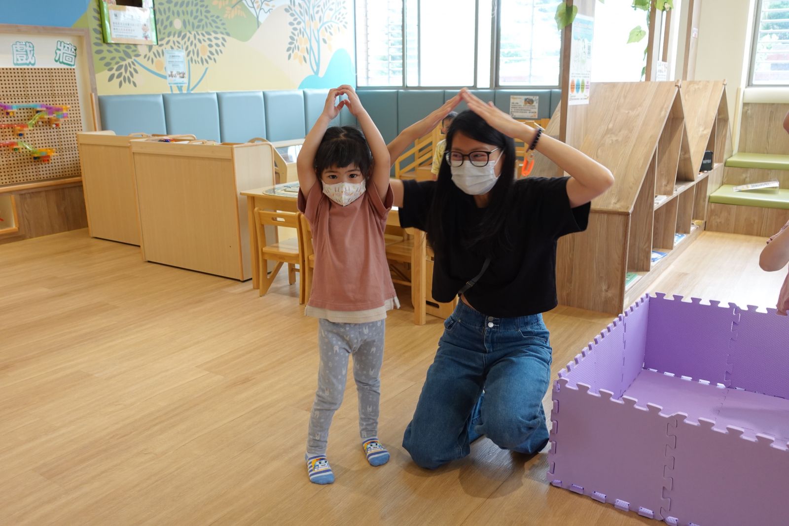 這次老師透過繪本故事配合玩偶、道具一起和親子讀繪本,房子有屋頂、牆壁、地板、門...,給人們帶來很多方便,接著,用巧拼一起搭建屬於自己的房子,在房子裡面跳跳舞,認識房子,愛惜自己的家!