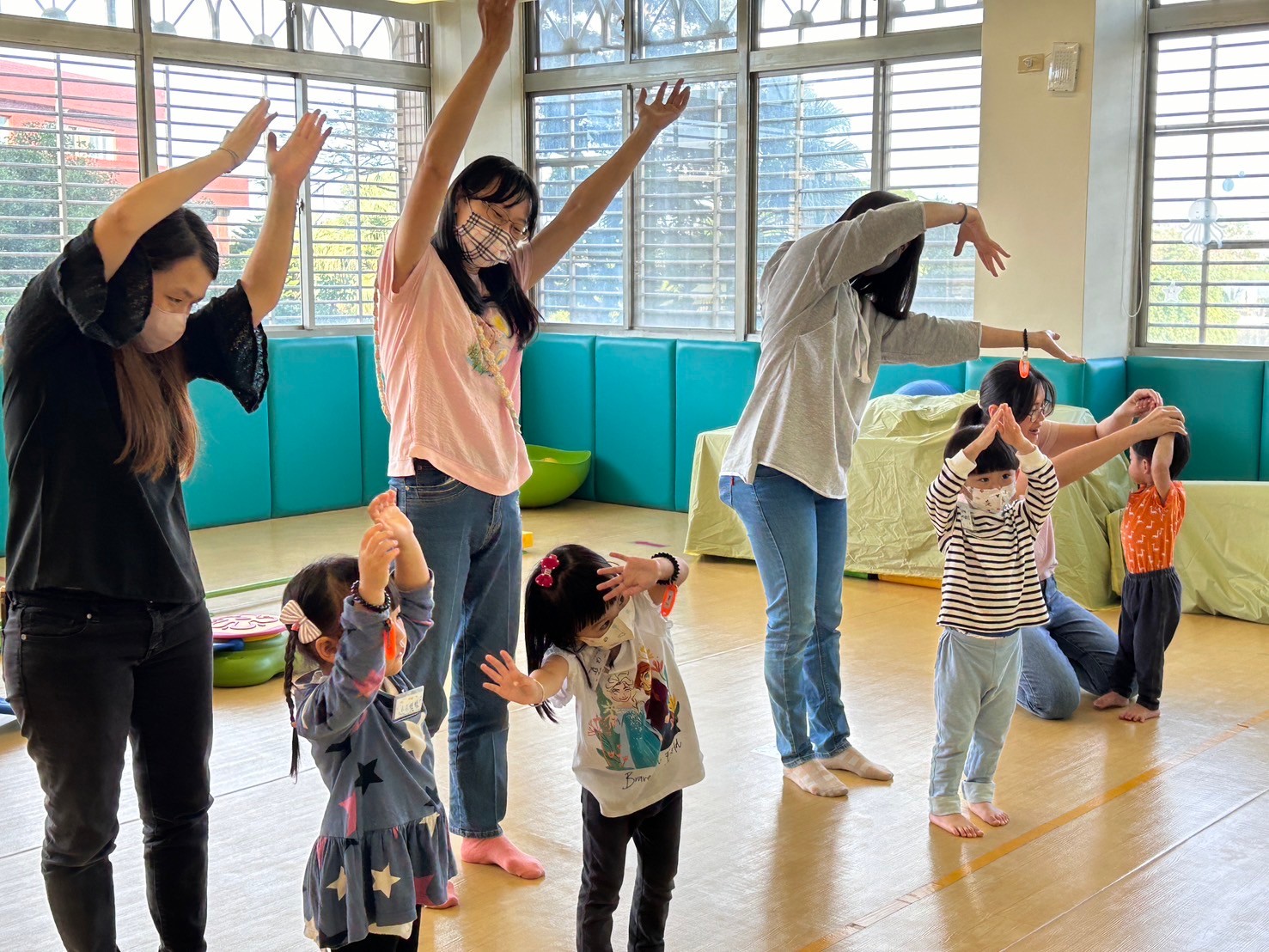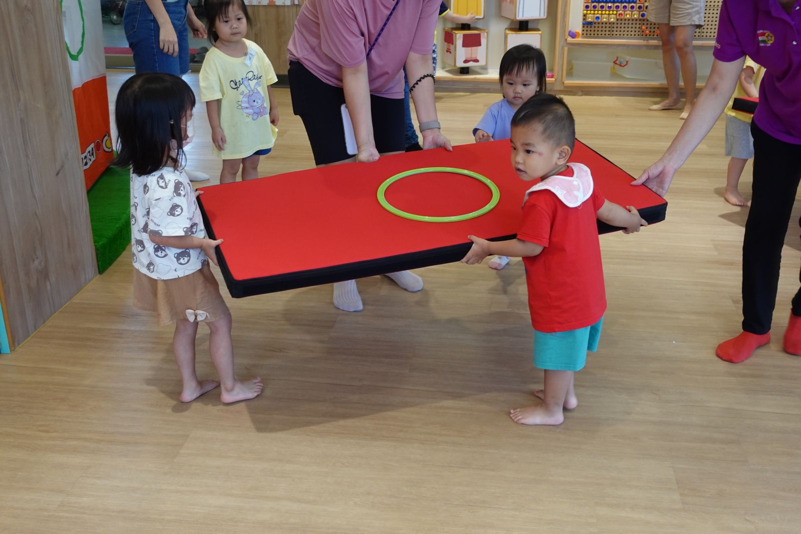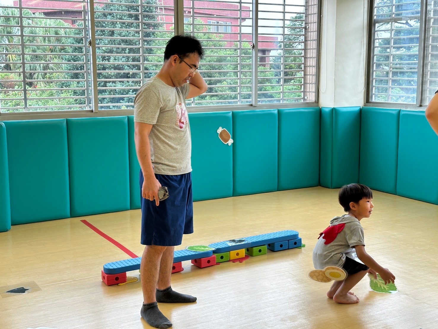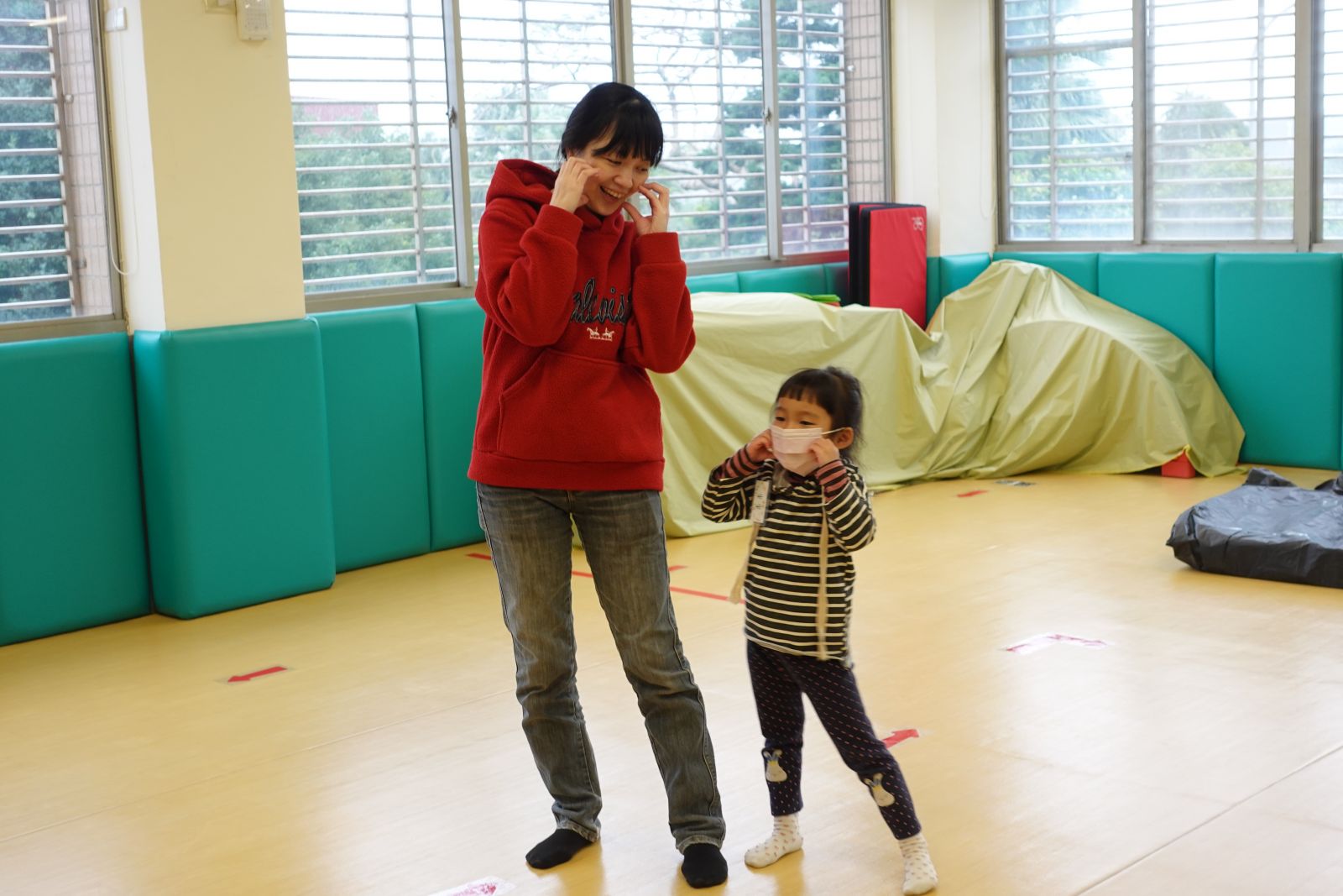 本次主題「好厝邊」,大小朋友知道在地上有哪個昆蟲有很多的好朋友,而且很會互相幫助的嗎?答案就是螞蟻!今天親子們一起化身小螞蟻,先用呼拉圈鋪出一條通往蟻窩的小路,接著小心翼翼踏著小路前進,還要合作穿越神奇隧道。大家齊心協力滾動呼拉圈,把「食物」一個個傳送出去,最後更合力搬運大大的甜甜圈食物到蟻窩裡。過程中親子們分工合作、互相幫忙,完成好多有趣的任務,原來當小螞蟻也可以這麼開心又充滿成就感!