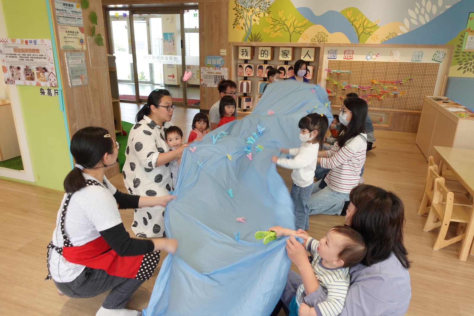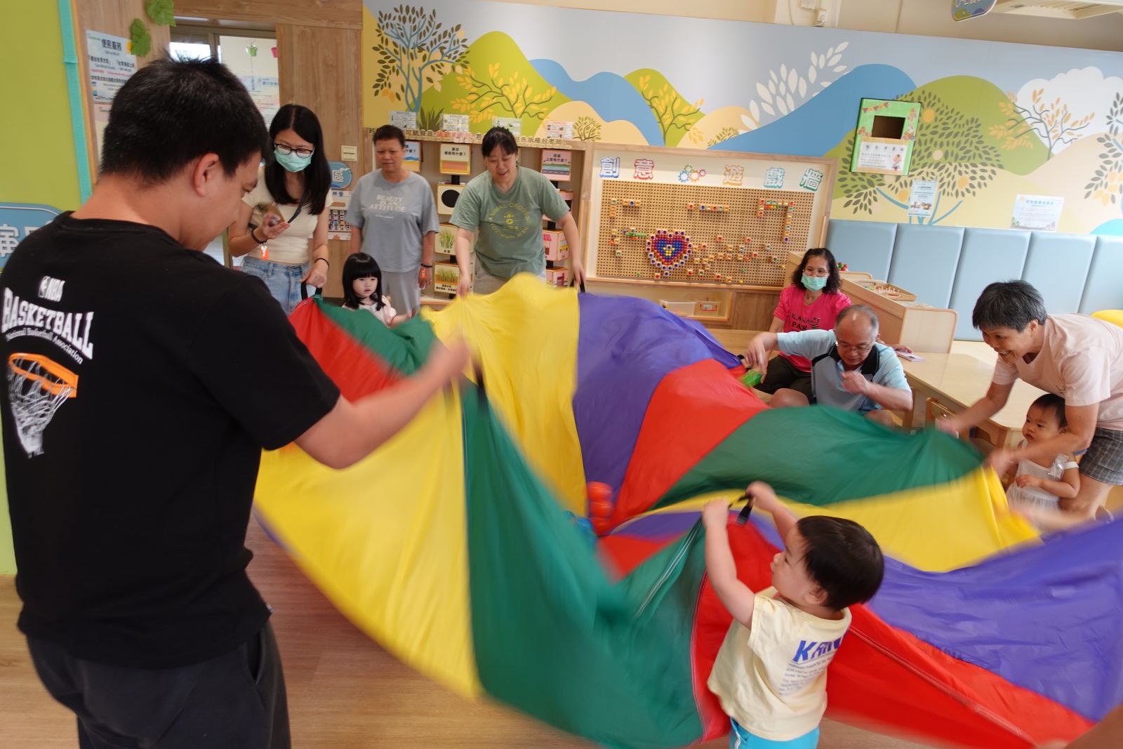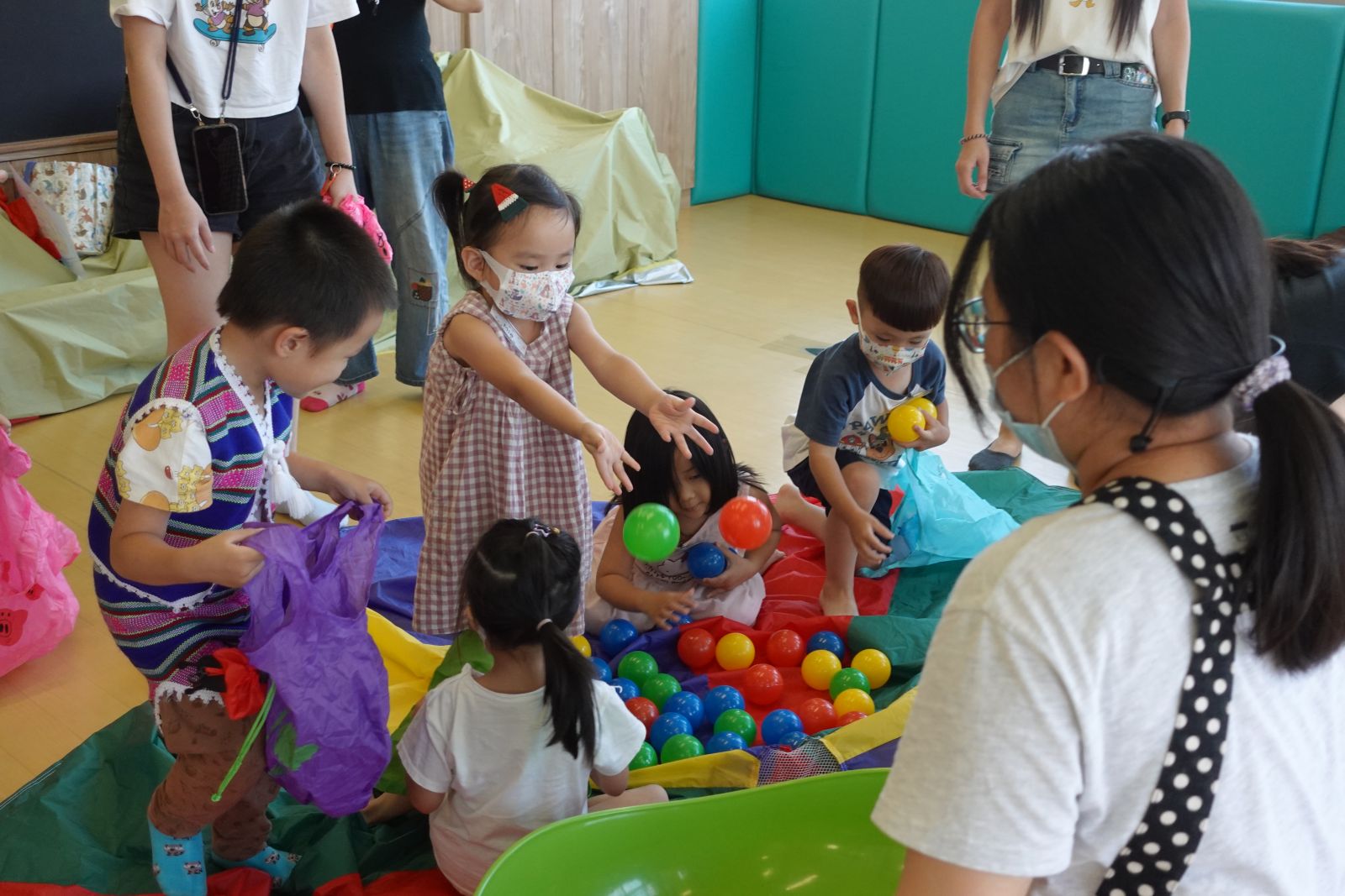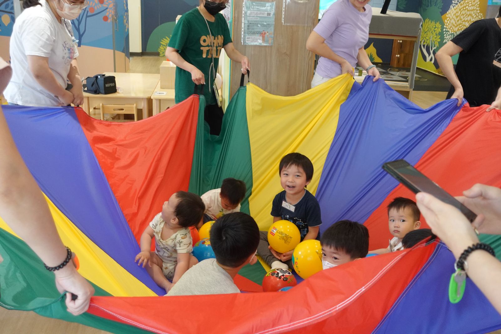 本次主題「好厝邊」,大小朋友知道在地上有哪個昆蟲有很多的好朋友,而且很會互相幫助的嗎?答案就是螞蟻!今天親子們一起化身小螞蟻,先用呼拉圈鋪出一條通往蟻窩的小路,接著小心翼翼踏著小路前進,還要合作穿越神奇隧道。大家齊心協力滾動呼拉圈,把「食物」一個個傳送出去,最後更合力搬運大大的甜甜圈食物到蟻窩裡。過程中親子們分工合作、互相幫忙,完成好多有趣的任務,原來當小螞蟻也可以這麼開心又充滿成就感!