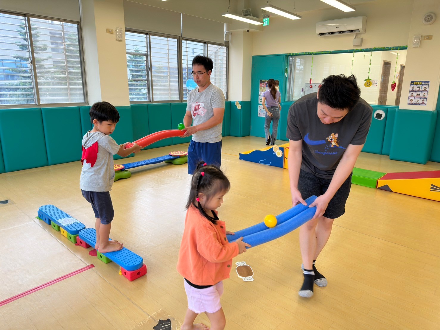大小朋友們知道5月的第二個星期日是甚麼節日嗎? 答案是母親節喔~老師透過球球請親子收集愛的能量,活動中除了讓照顧者用球幫孩子按摩,孩子也要用球幫照顧者按摩,接著一起合力夾住球繞過角椎,最後將收集完的 愛的能量球投進箱子裡,會變成美麗的康乃馨啦~小朋友除了抱抱我們的照顧者,更要感謝照顧者的辛勞喔!