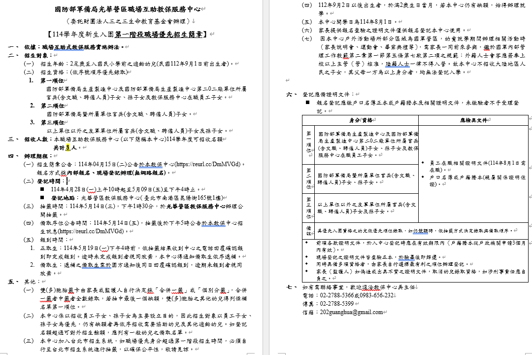 首頁 > 國防部軍備局光華營區 > 招生資訊 > 114學年度招生簡章(第一階段職場優先)