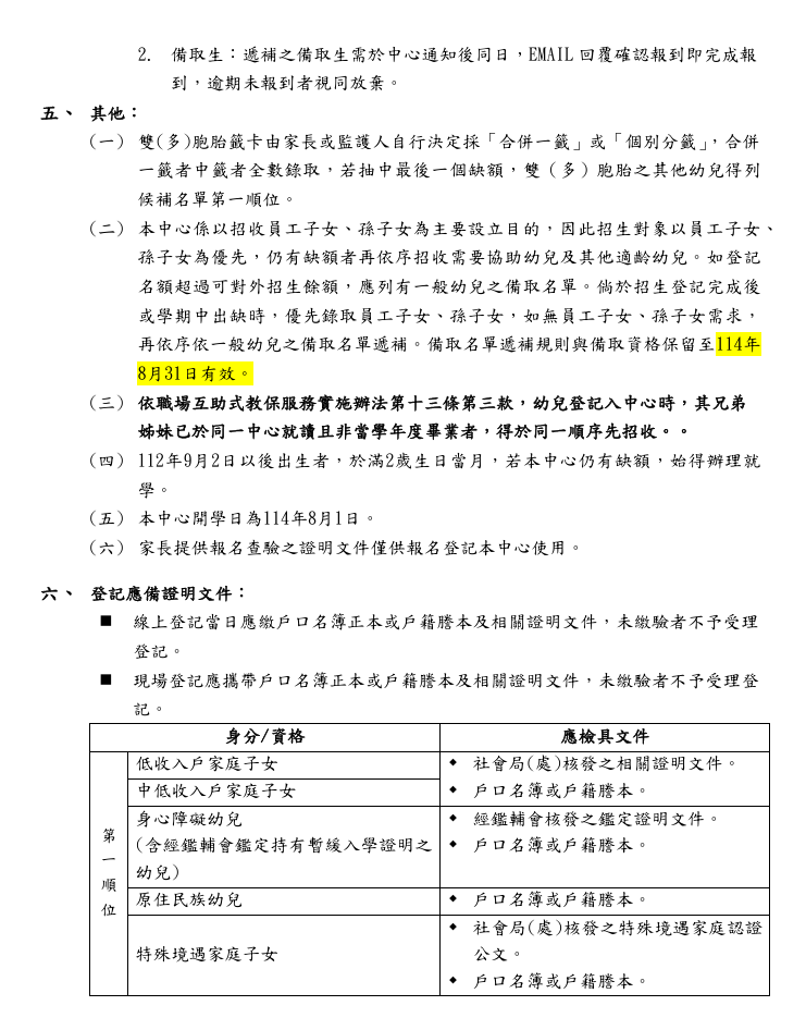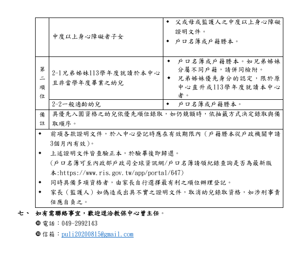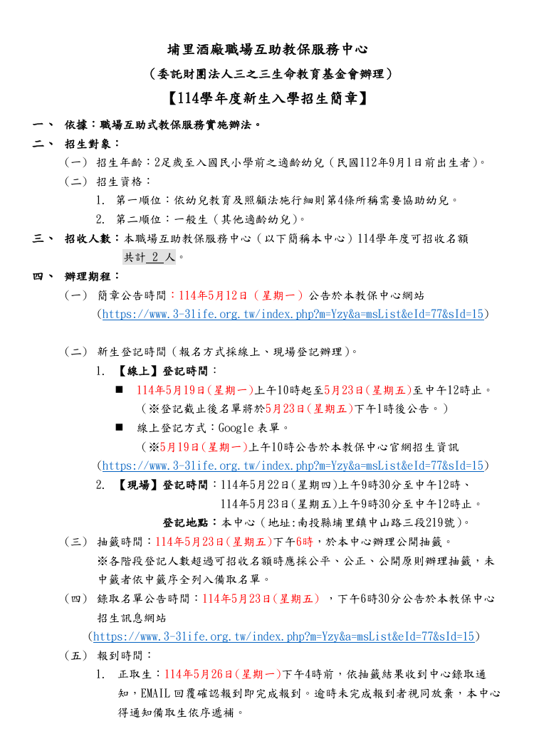♦♦♦本中心優先招收埔里酒廠所屬各機構員工子女、孫子女♦♦♦