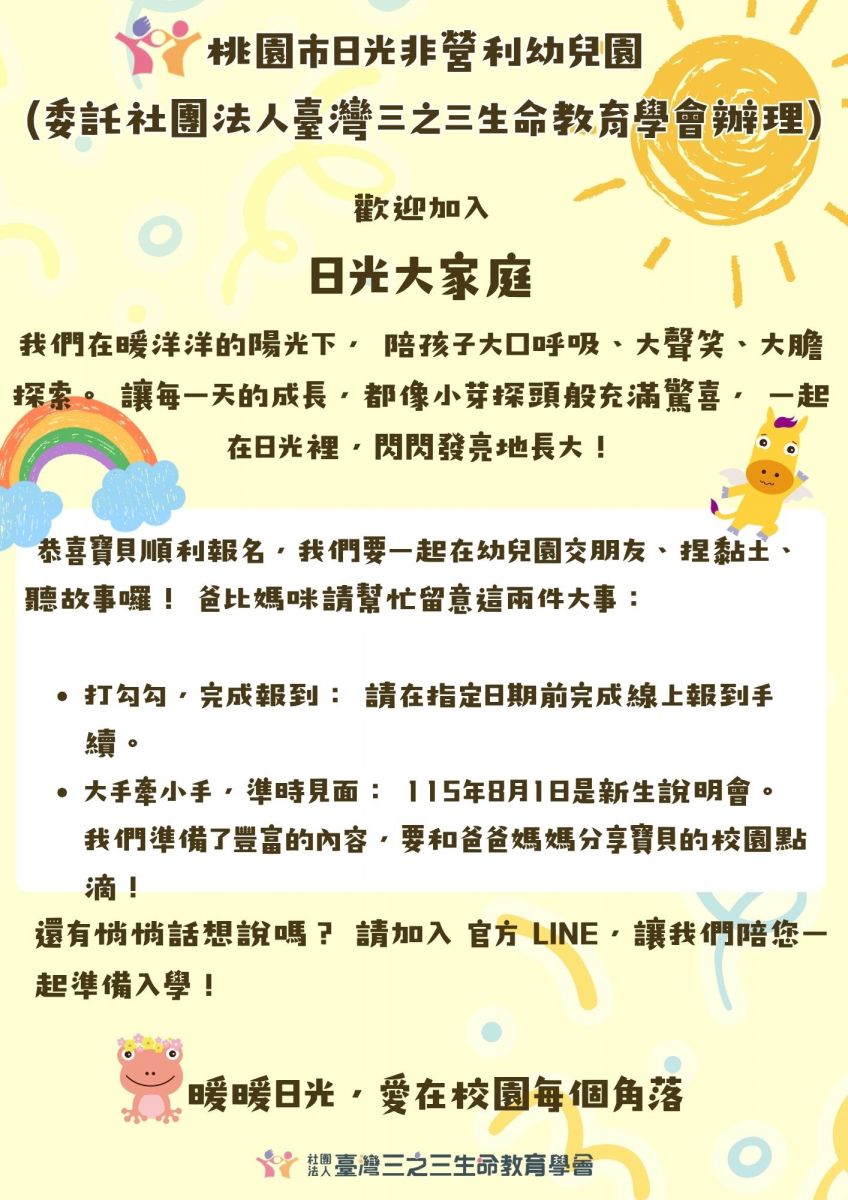 - 桃園市三聖非營利幼兒園(委託社團法人臺灣三之三生命教育學會辦理)