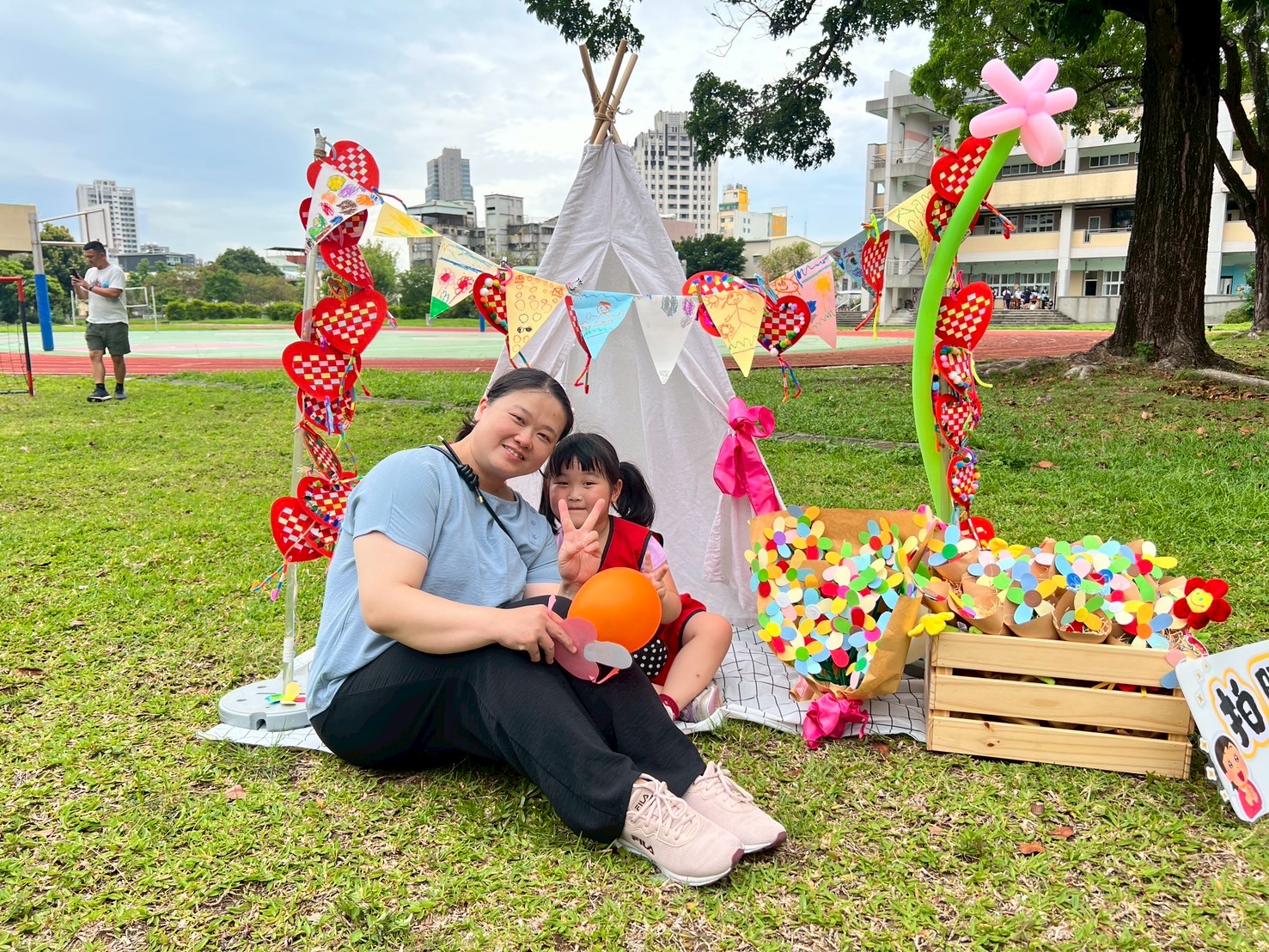 當天和家人們認真闖關,玩得很開心,校園裡都充滿大家的笑聲呢!