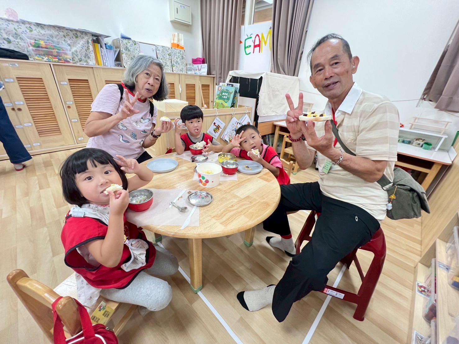 孩子們與阿公、阿嬤一起隨著輕快的旋律手舞足蹈;手做美食,一邊同樂一邊享用;操作教具,孩子教阿公、阿嬤一起操作,趣味多多。一起創造美好的時光