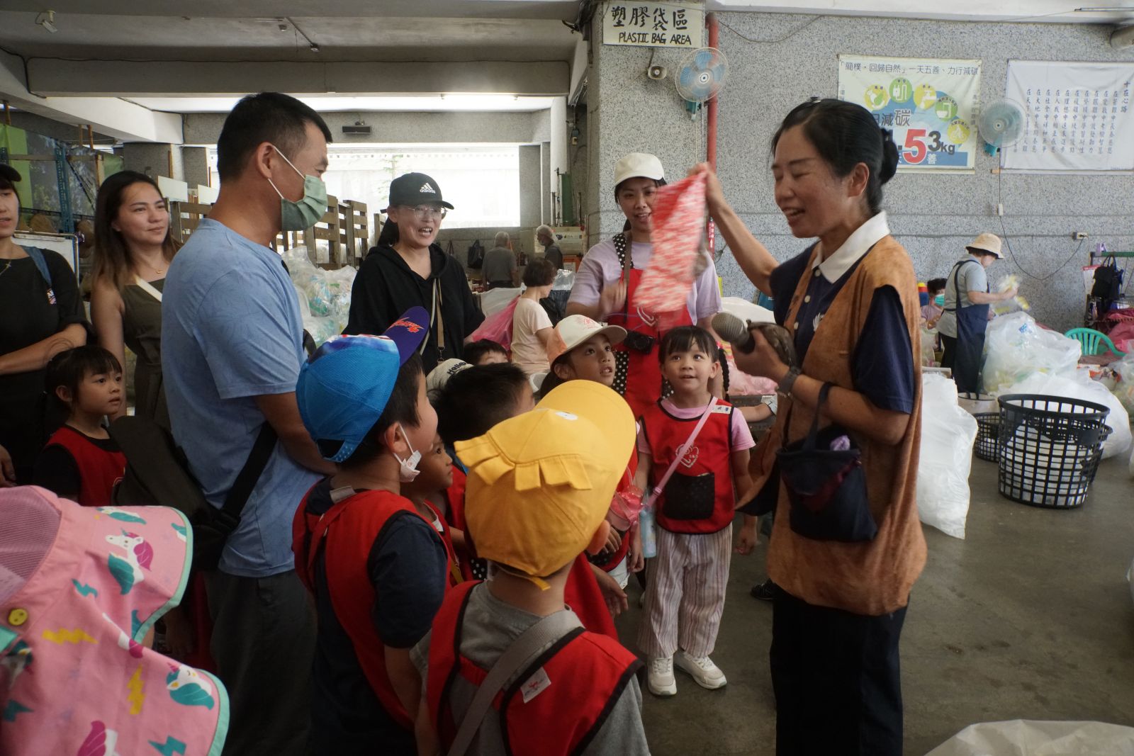 以「垃圾到哪裡去了?」為主題活動,帶領幼兒參訪環保回收站。志工們帶領幼兒們認識「環保十指口訣」,並引導幼兒觀察回收站的分類與整理流程。