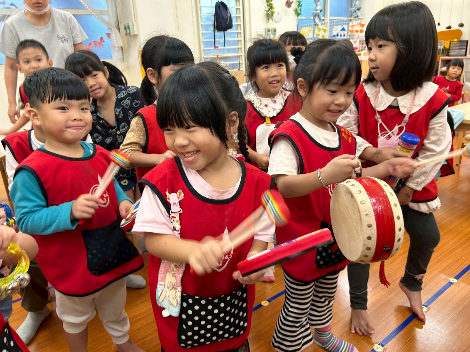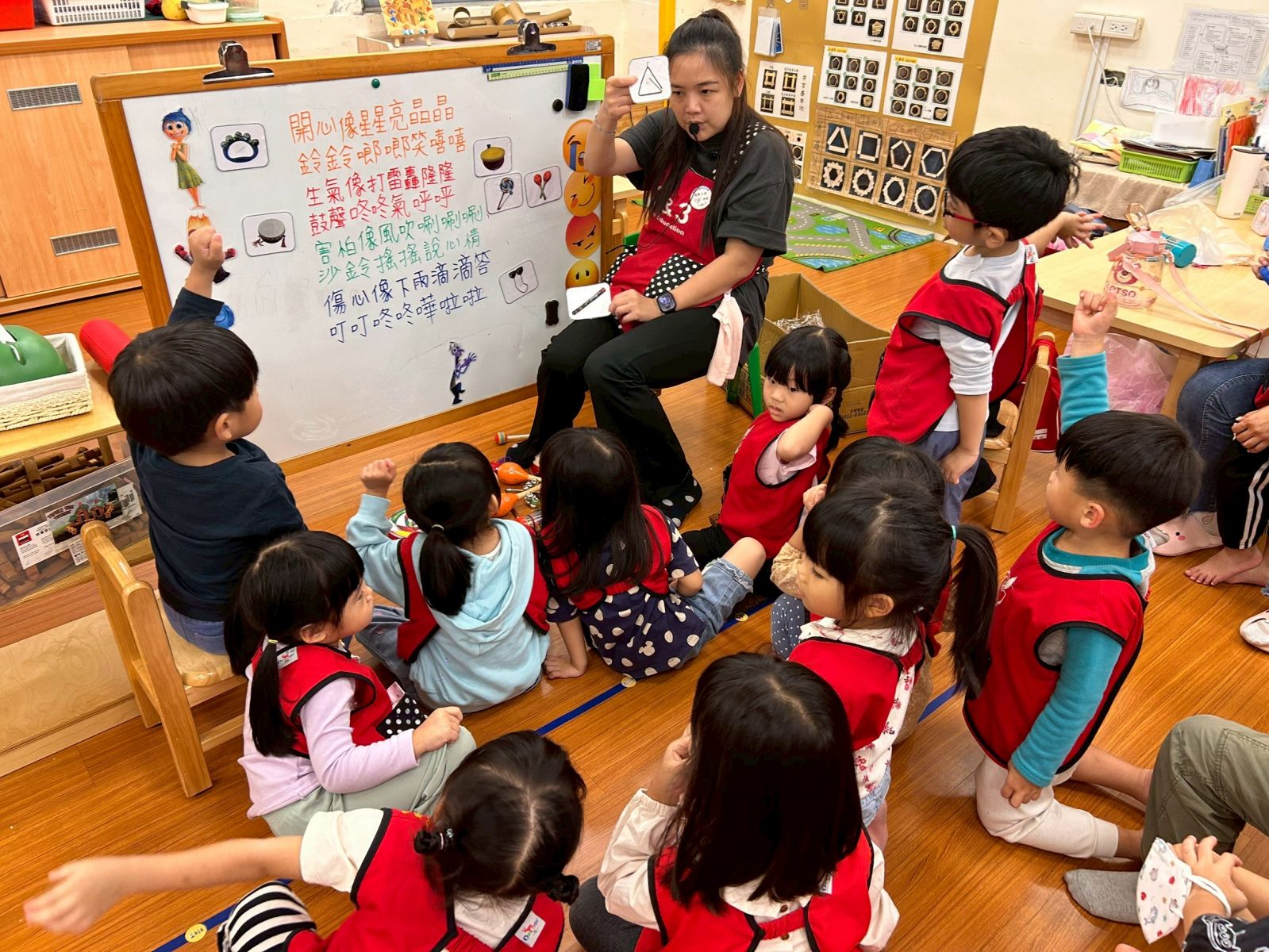 在心情交響樂活動中,幼兒認識不同情緒,用敲、搖、拍等方式,找出代表心情的聲音,一起合奏班級的心情交響樂。