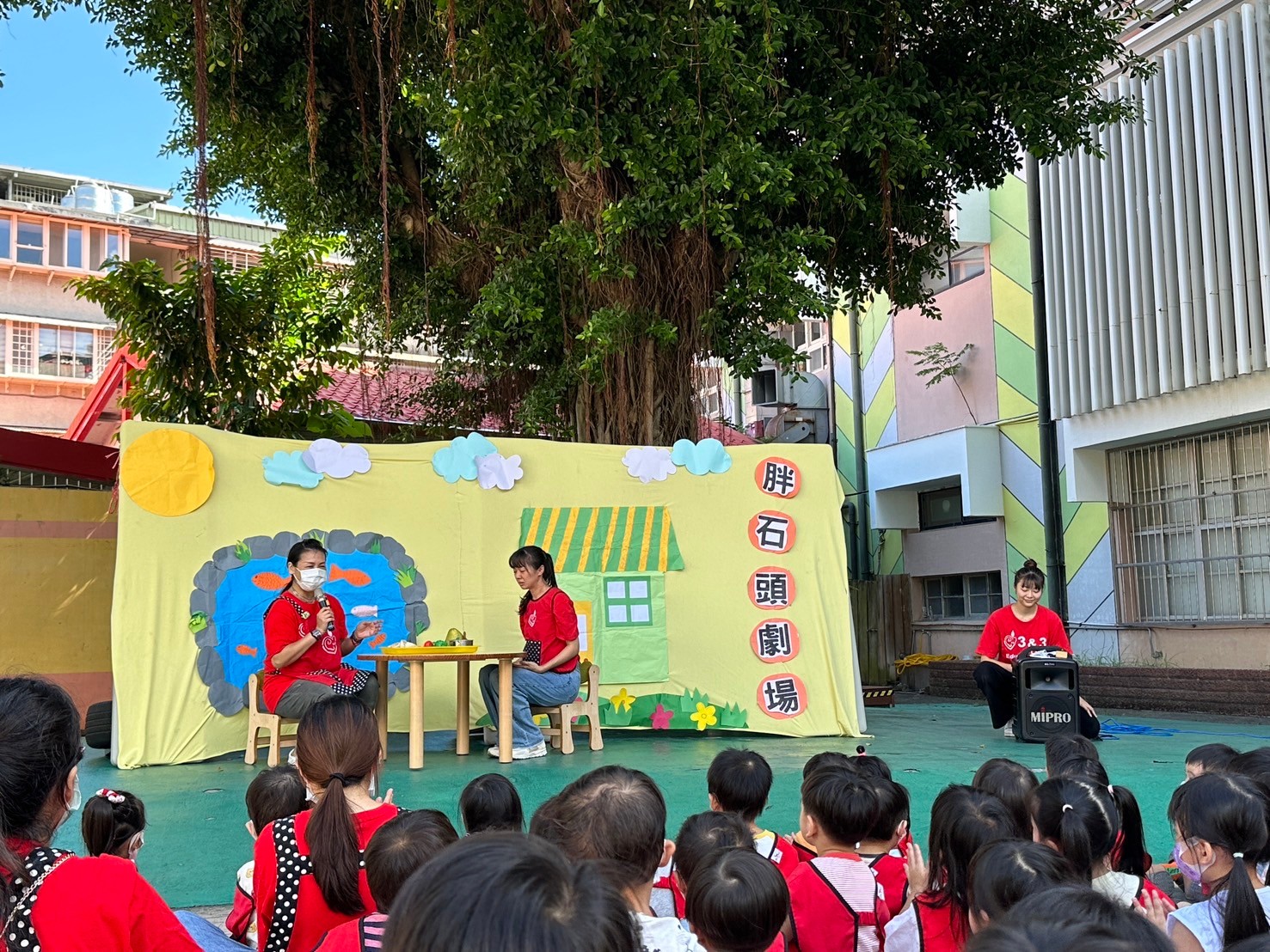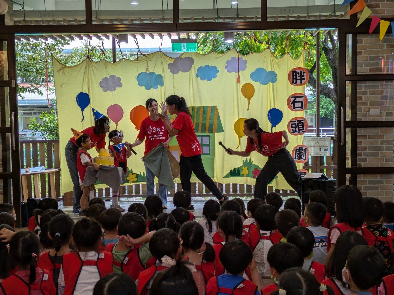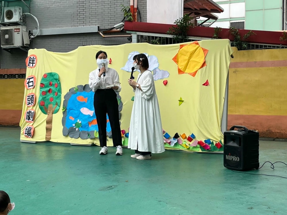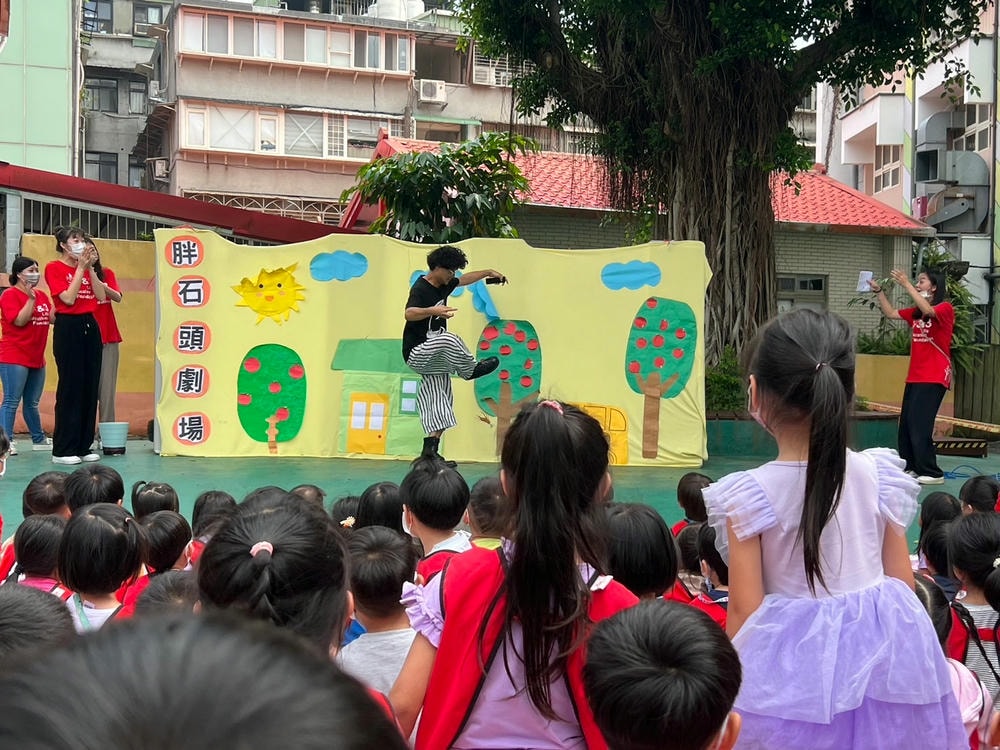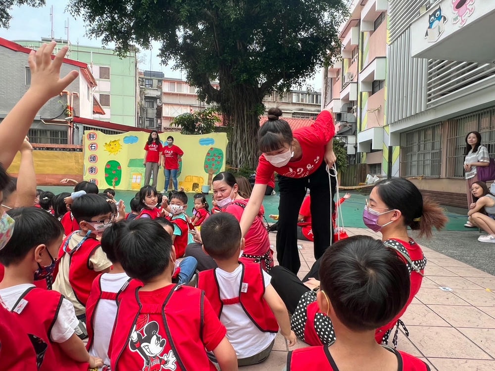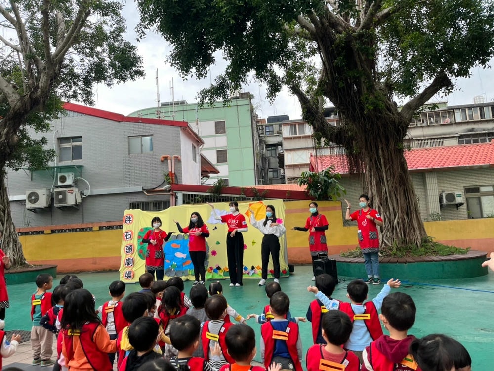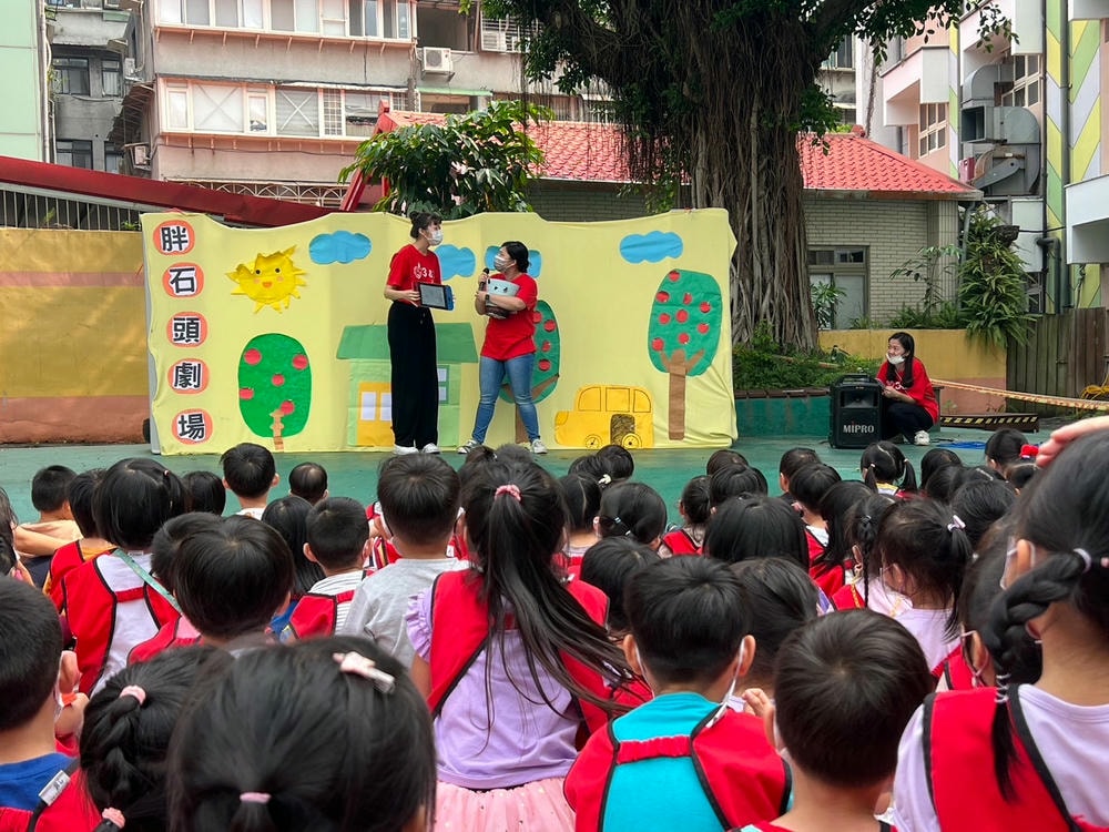 透過胖石頭戲劇演出,引導孩子能將自己不需要的玩具及繪本分享給需要的人,把愛散播出去。