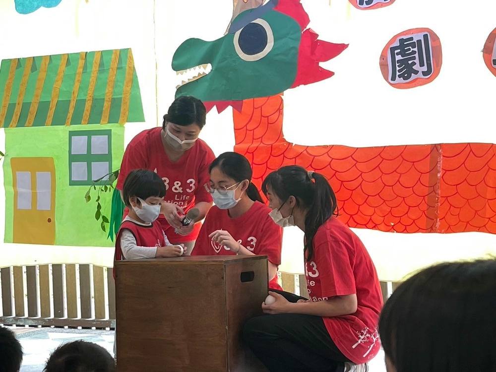 透過演戲讓孩子們知道如何運用哪些方式去感謝身邊愛自己的家人,並從互動中體會主動表達愛的重要性及快樂。