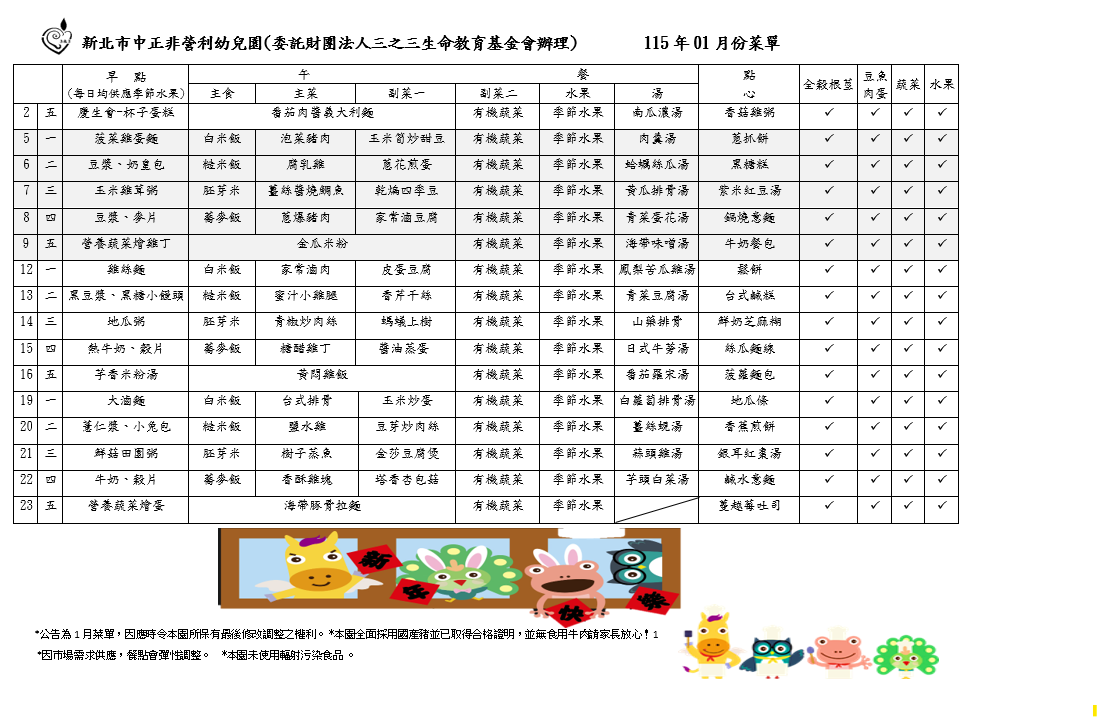 115年01月菜單