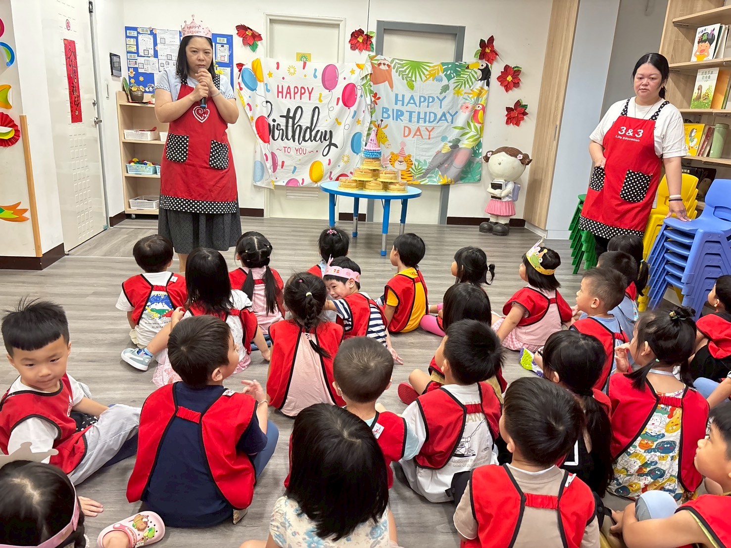 大家一起唱生日歌,分享甜甜的蛋糕,祝福壽星們天天開心,快樂長大,