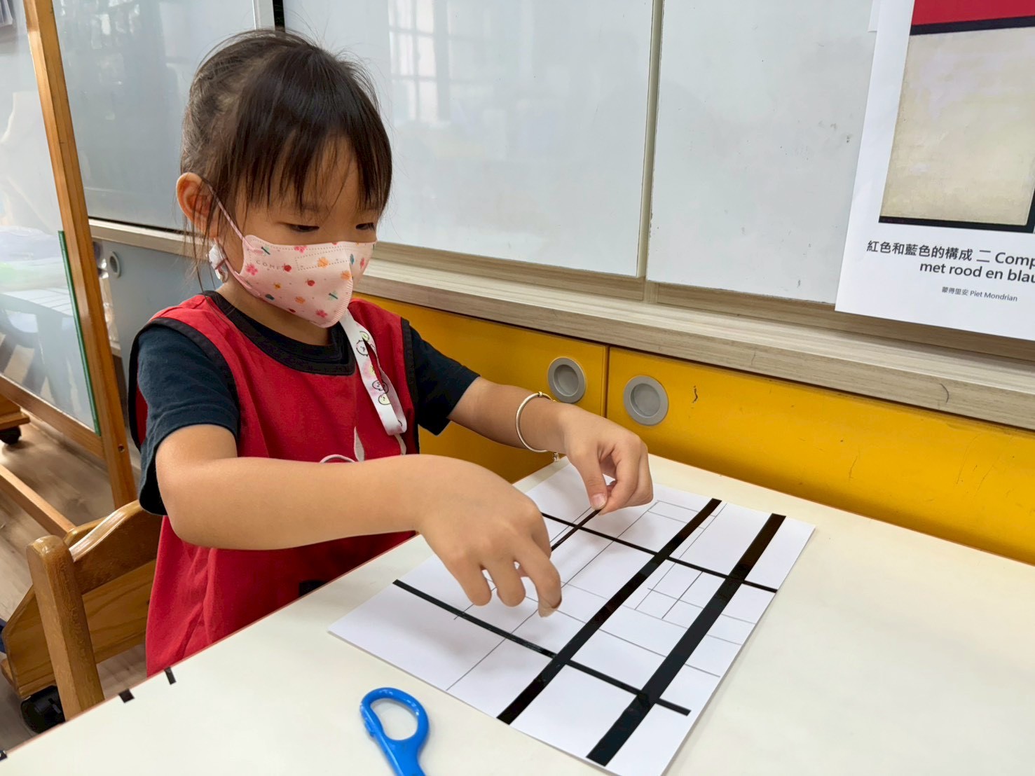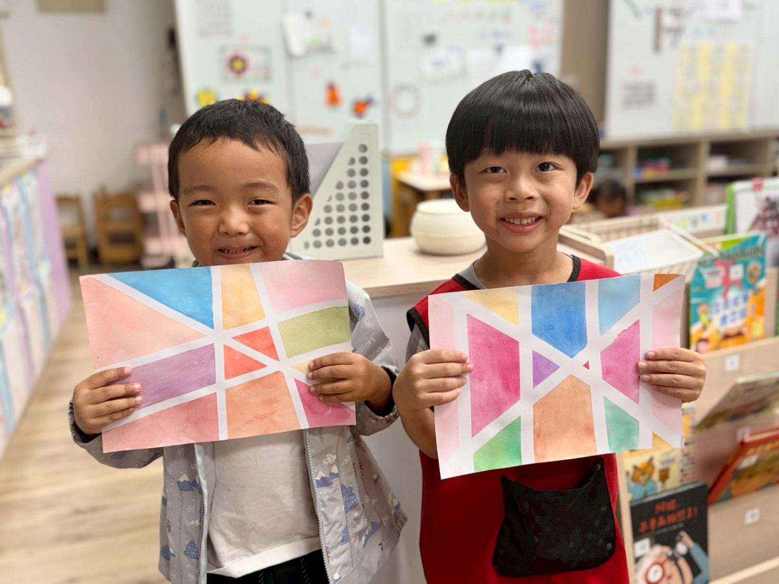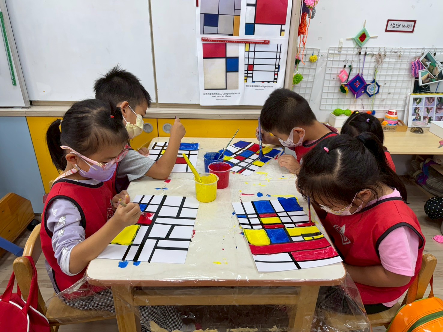 諾A班的寶貝們化身小小偵探,在校園中尋找生活裡的各種形狀,發現圓形、三角形、正方形、長方形無所不在。我們運用觀察到的形狀進行創作,從色紙拼貼創作到編織花格子大象,再到蒙德里安風格畫作,在觀察與創作中體驗形狀與色彩的美!