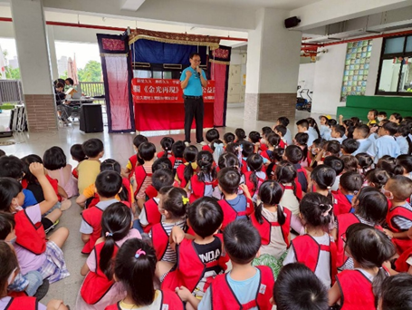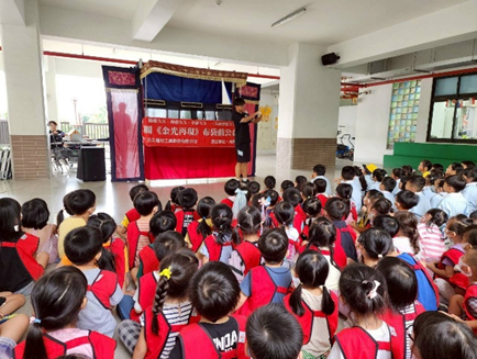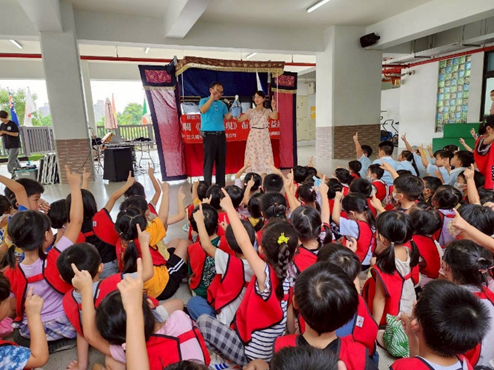 113傳藝GO YOUNG校園巡演計畫,在樹德國小演出布袋戲,幼兒們一同參與觀賞傳統布袋戲的表演。113.10.17