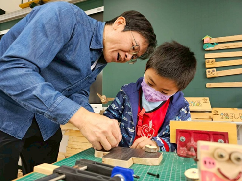 楊老師設計每人做一個阿德鑰匙圈,從磨木頭的邊角,讓木頭可以圓弧光滑,上蠟保護木頭,在鑽上鑰匙圈,作品完成,幼兒對於親手做愛不釋手,到處分享成果。