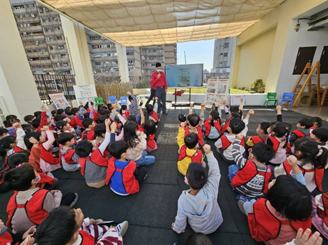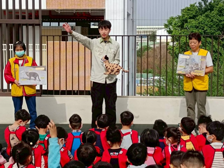 114.12.04 台北動物園行動車到樹德非營利幼兒園,進行在地的保育動物石虎的習性與特徵介紹,幼兒學習辨識石虎和貓有什麼不同,動物園的保育人員透過動作讓幼兒學習,石虎有尖尖的耳朵、身上有斑點、頭上有三條白線線,熟悉石虎跟貓有大大的不同。