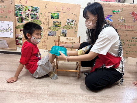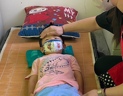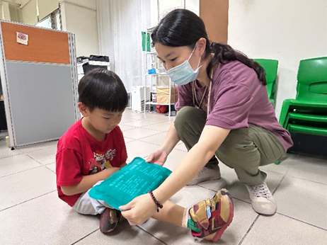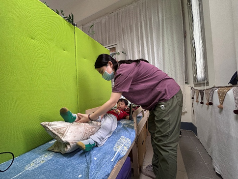 1.協助幼兒深呼吸放鬆,採半坐臥姿勢