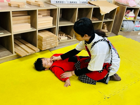 2.將幼兒置於安全位置,例如平躺並保持呼吸道暢通,如有需要,可採取適當急救措施(如掐人中、輕拍刺激喚醒...等)。