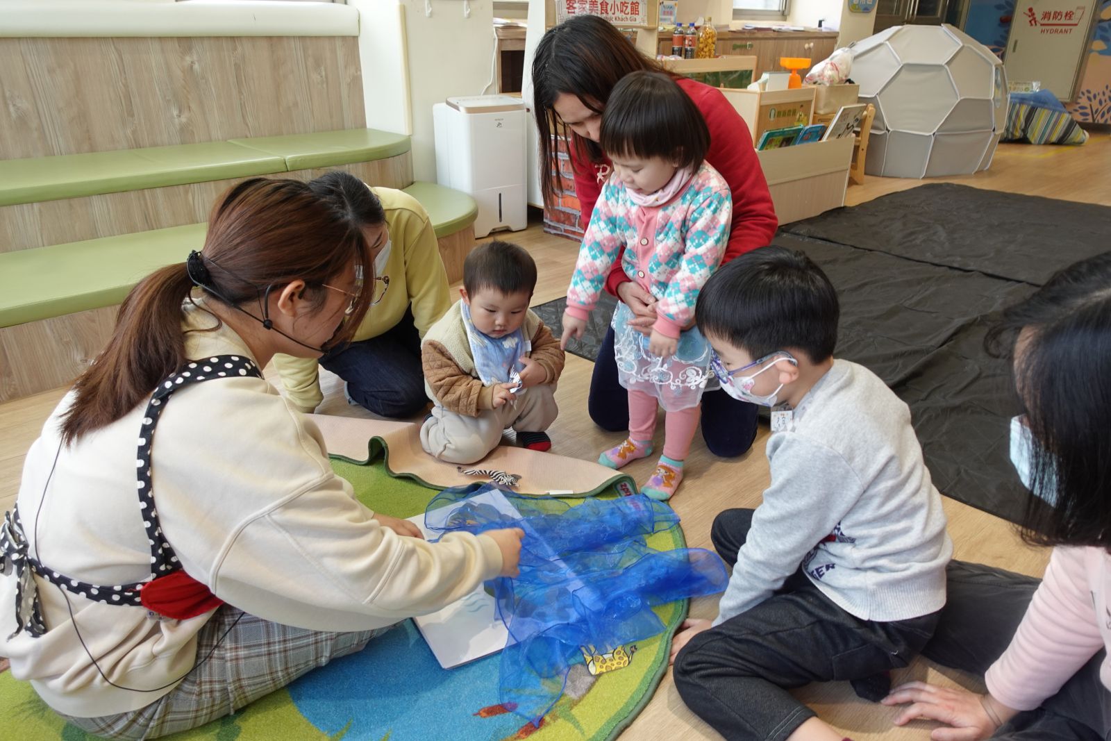 配合本月主題:守護家鄉小尖兵,老師帶著親子一起共讀《塑膠袋流浪記》,看看書中塑膠袋小紅一共被使用了幾次,接著老師帶領親子一起用生活中最常見的塑膠袋來進行一系列的親子互動遊戲,並說明塑膠袋重複使用、妥善回收塑膠袋的小動作就可以守護我們的家園!