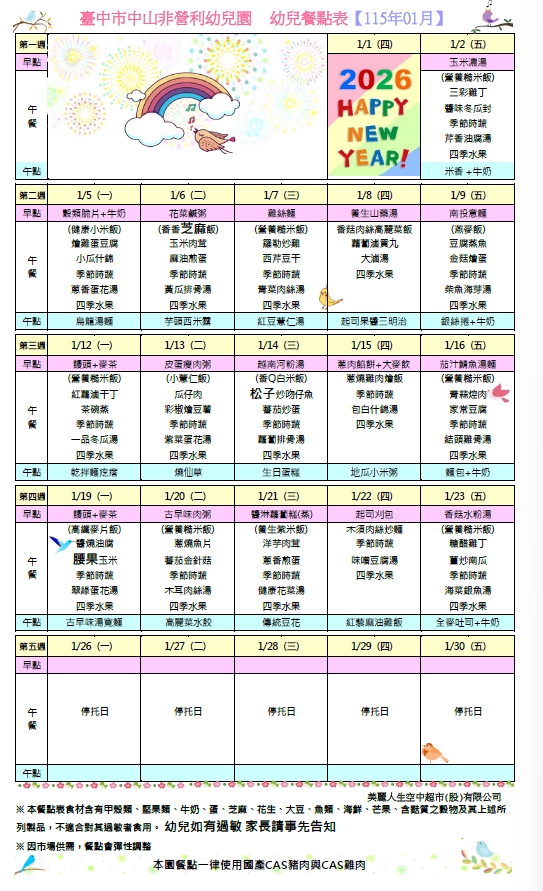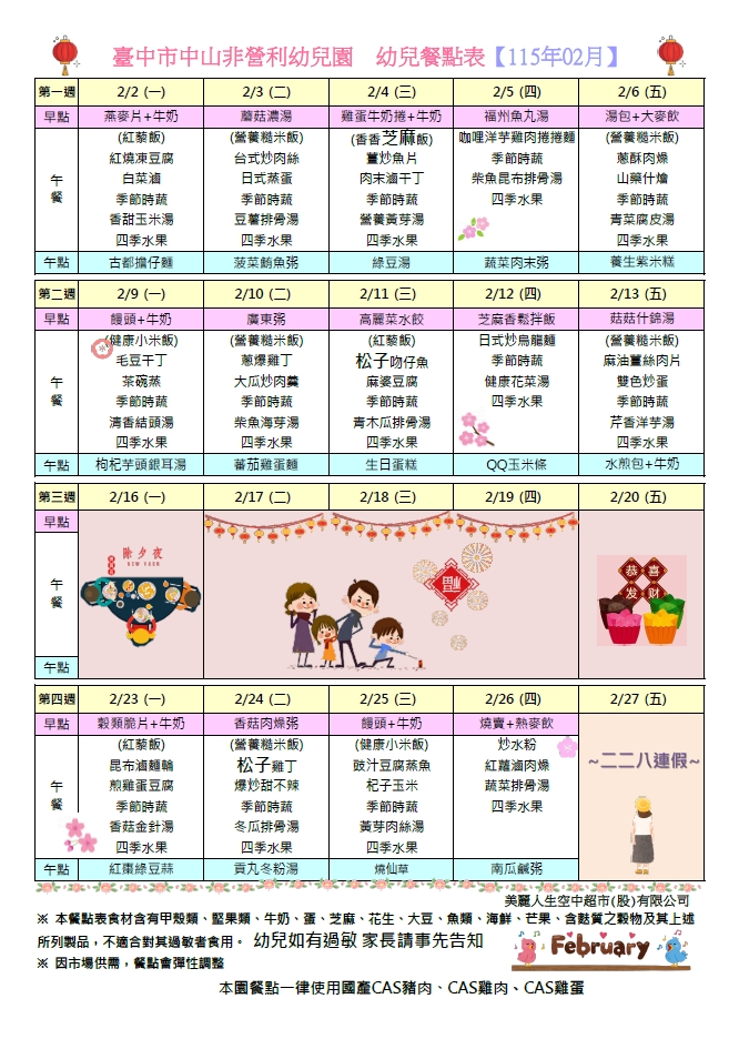 每月餐點表