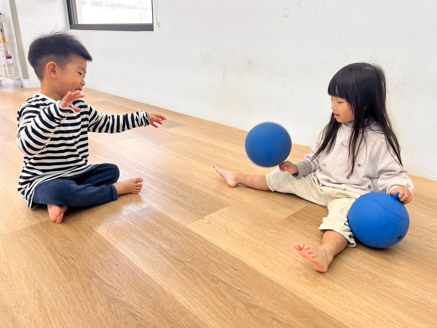 透過不同的動作,讓孩子們運用不同的姿勢去完成指令,例如:原地拍球、用力拋球並接住、帶球走路、丟球、踢球等,在不同的動作之下,要運用的部位及力量都不同,更考驗孩子的手眼協調能力,才能有效的帶著球進行活動。