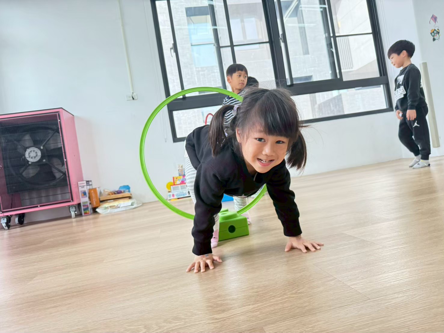 孩子們在三角錐間跑來跑去,繞過去、跳過來,還可以像小蛇一樣爬,玩得開心又刺激!透過這些動作,不只讓身體變得更有力量,還能練習控制自己的動作和平衡感,讓動作更靈活,玩耍中也變得更厲害!