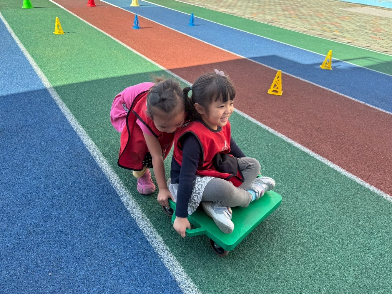 ☼ 四輪板車-運用四輪板車刺激幼兒神經反應及控制本體活動,並促進與同儕之間的互動。